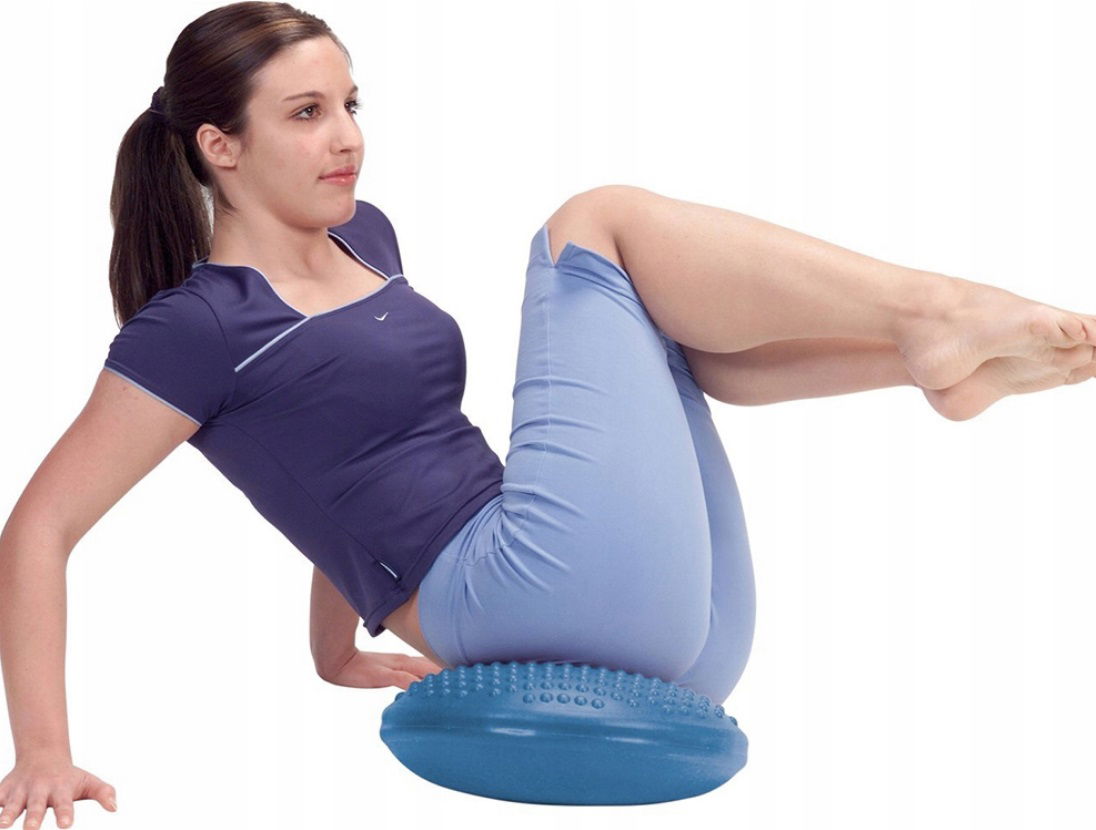 Poduszka sensoryczna wykorzystywana jest przez rehabilitantów oraz instruktorów fitness do takich ćwiczeń jak: