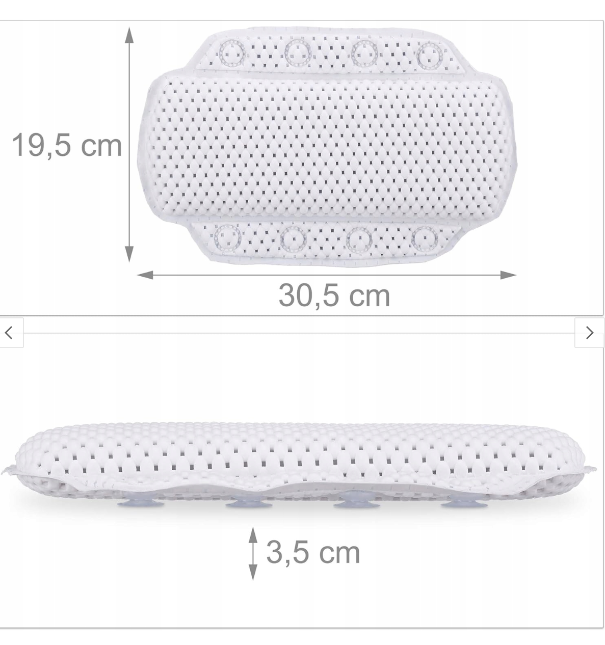 🫵 podstawa: poduszka do wanny wysokość szerokość około 19,5 x 30,5 x 3,5 cm przyssawki o średnicy około 1,8 cm