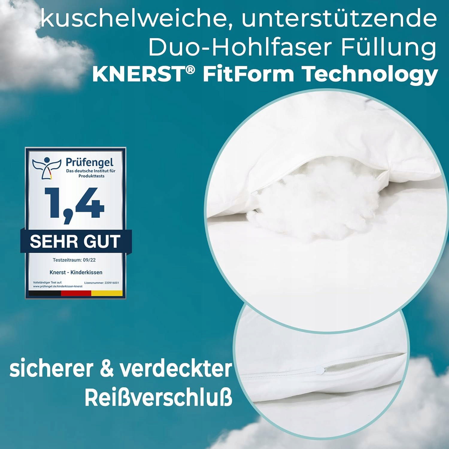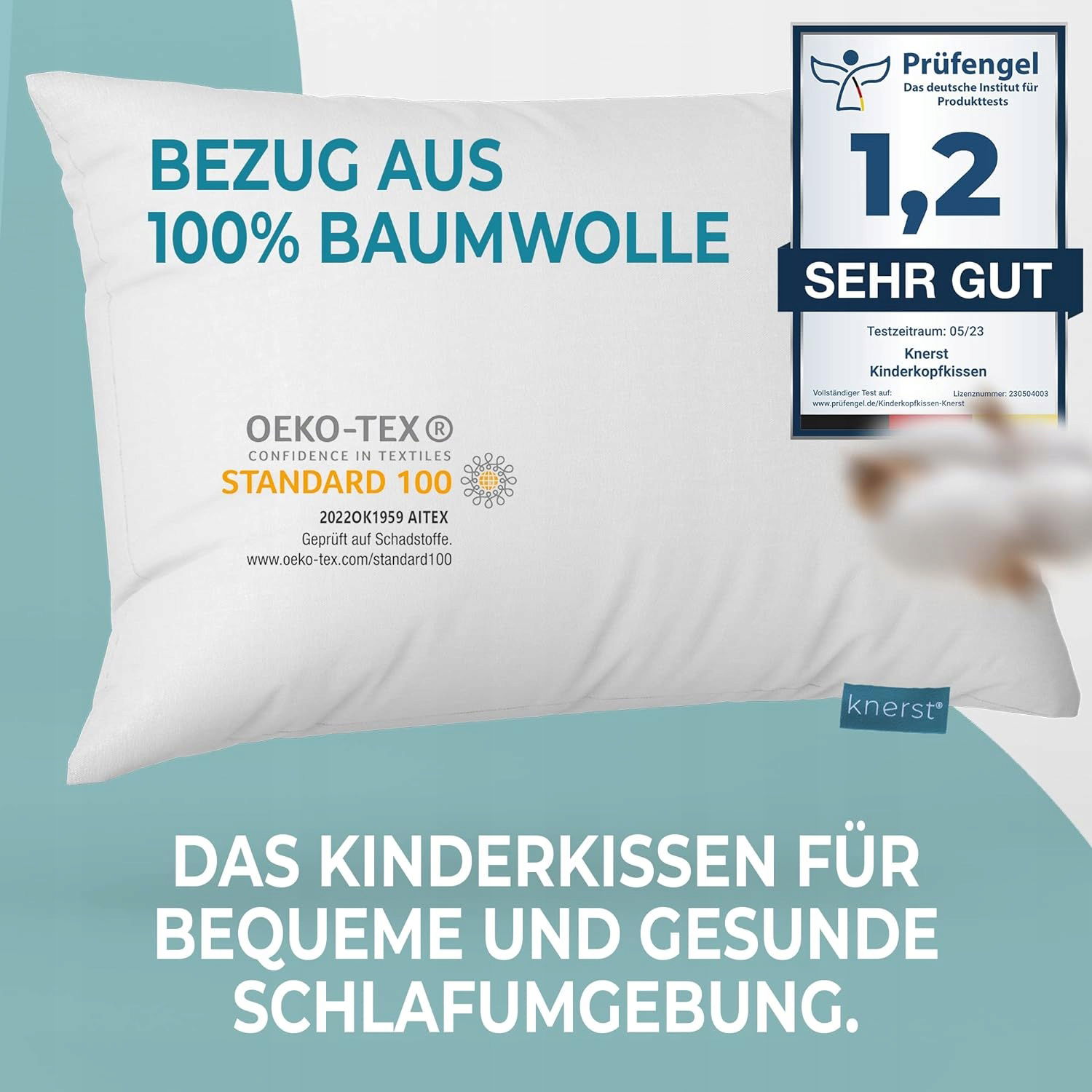 Zapewnij swojemu dziecku najlepszy sen: nasza poduszka dziecięca z poszewką w 100% z bawełny i silikonowanym wypełnieniem z włókien kanalikowych zapewnia przytulne uczucie podczas snu i optymalne podparcie dla spokojnego snu.