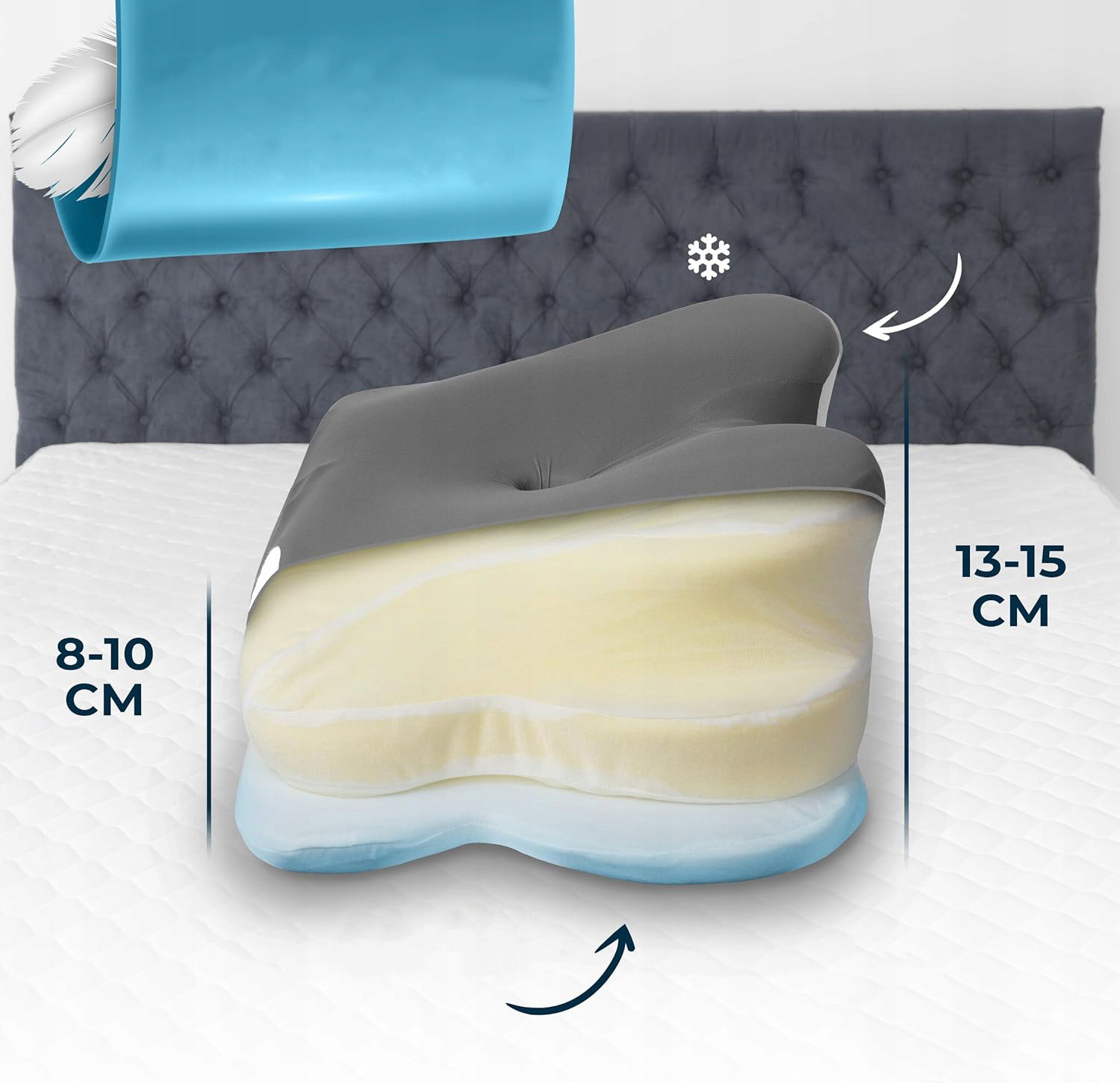 ✅ Dwie wysokości do wyboru – ergonomiczny kształt pozwala dopasować poduszkę do Twojej pozycji snu, niezależnie czy śpisz na plecach, boku czy brzuchu.