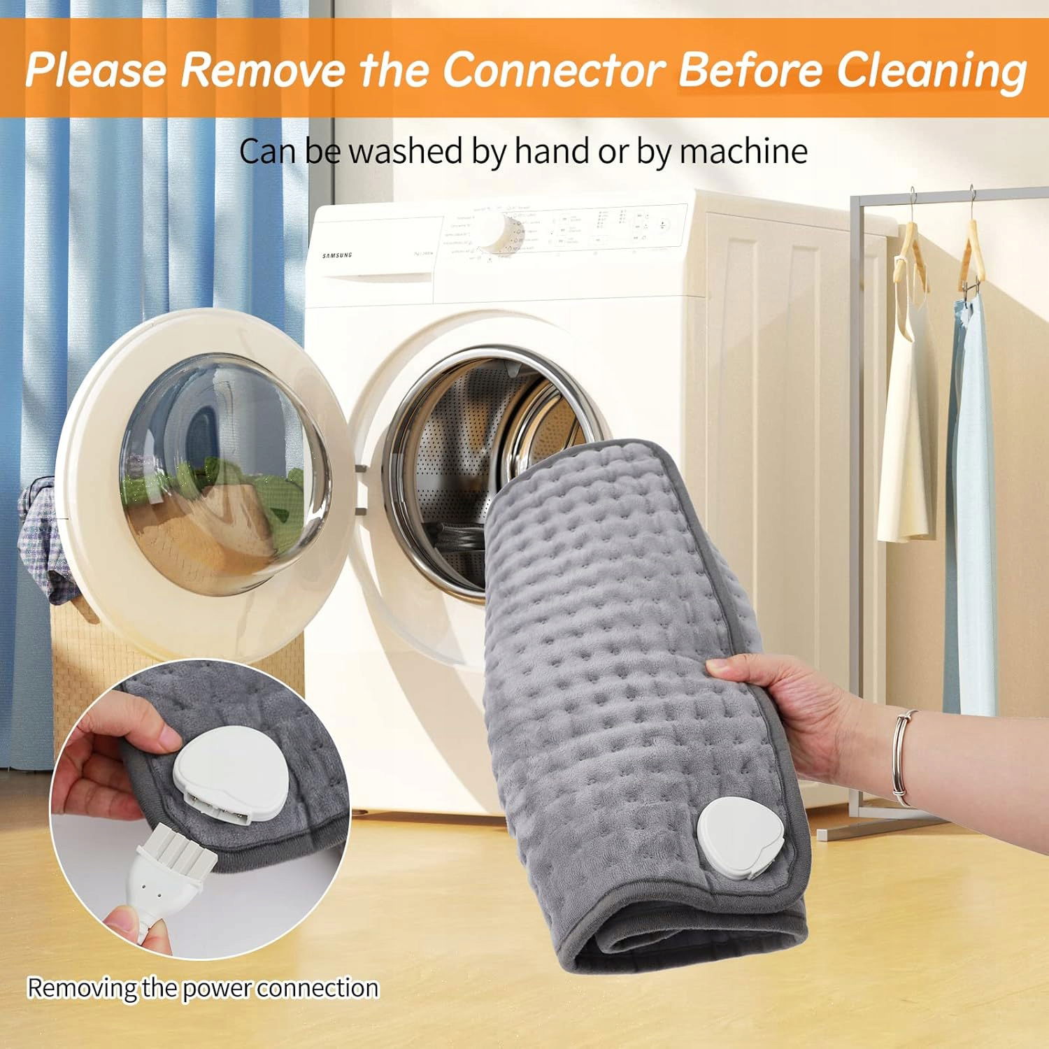 Dzięki funkcji timera nie musisz martwić się o wyłączenie poduszki, co zwiększa bezpieczeństwo użytkowania. Zmywalny materiał gwarantuje łatwe utrzymanie w czystości, a lekka konstrukcja ułatwia przenoszenie.