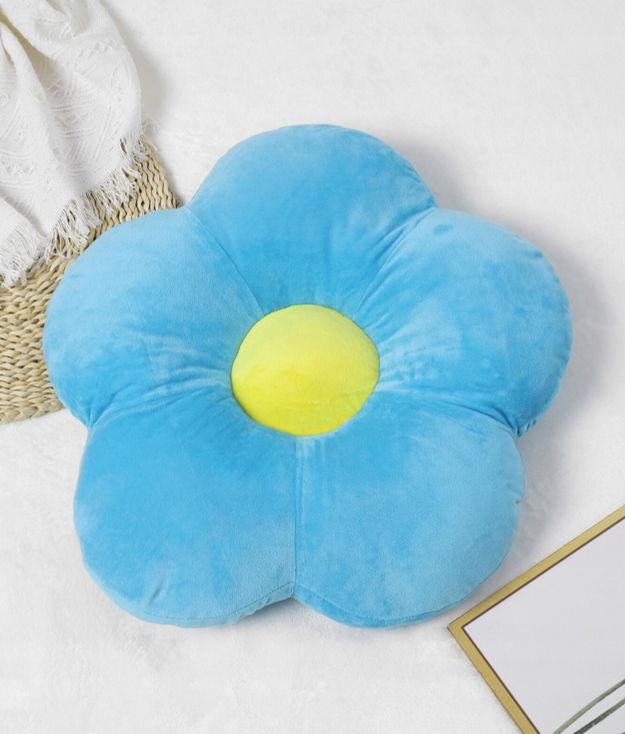 Ta piękna poduszka została stworzona z myślą o najmłodszych. Jej wesoły, kolorowy design - niebieskie płatki z żółtym środkiem - wniesie radość i bajkowy nastrój do każdego pokoju dziecięcego.