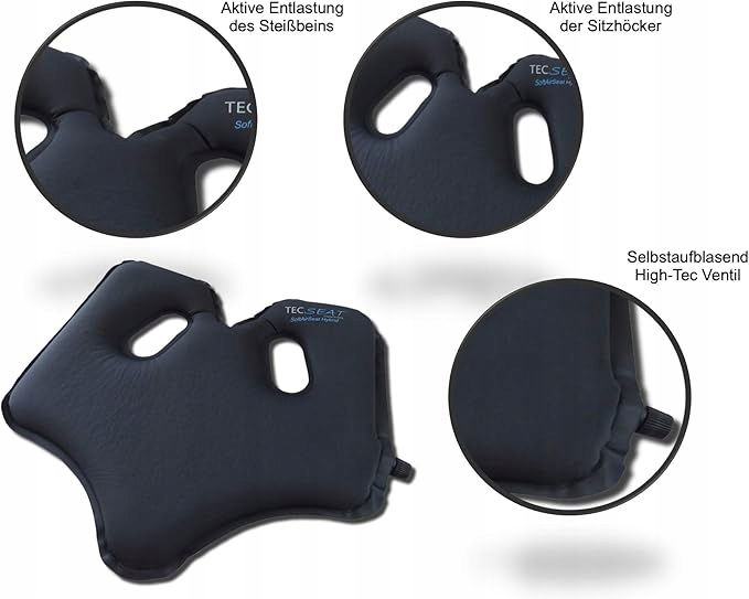 Funkcja samopompowania, dla osób w każdym wieku, szybkie i bezpieczne w użyciu dzięki zaawansowanemu technologicznie zaworowi, bardzo łatwe w użyciu, jakby ręką ducha, poduszka siedziska napompowuje się sama