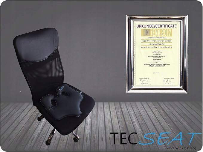 Hybrydowe siedzisko Softair redukuje obciążenie kręgosłupa do minimum podczas siedzenia, lepiej niż jakakolwiek poduszka żelowa lub piankowa, dzięki aktywnej ulgi