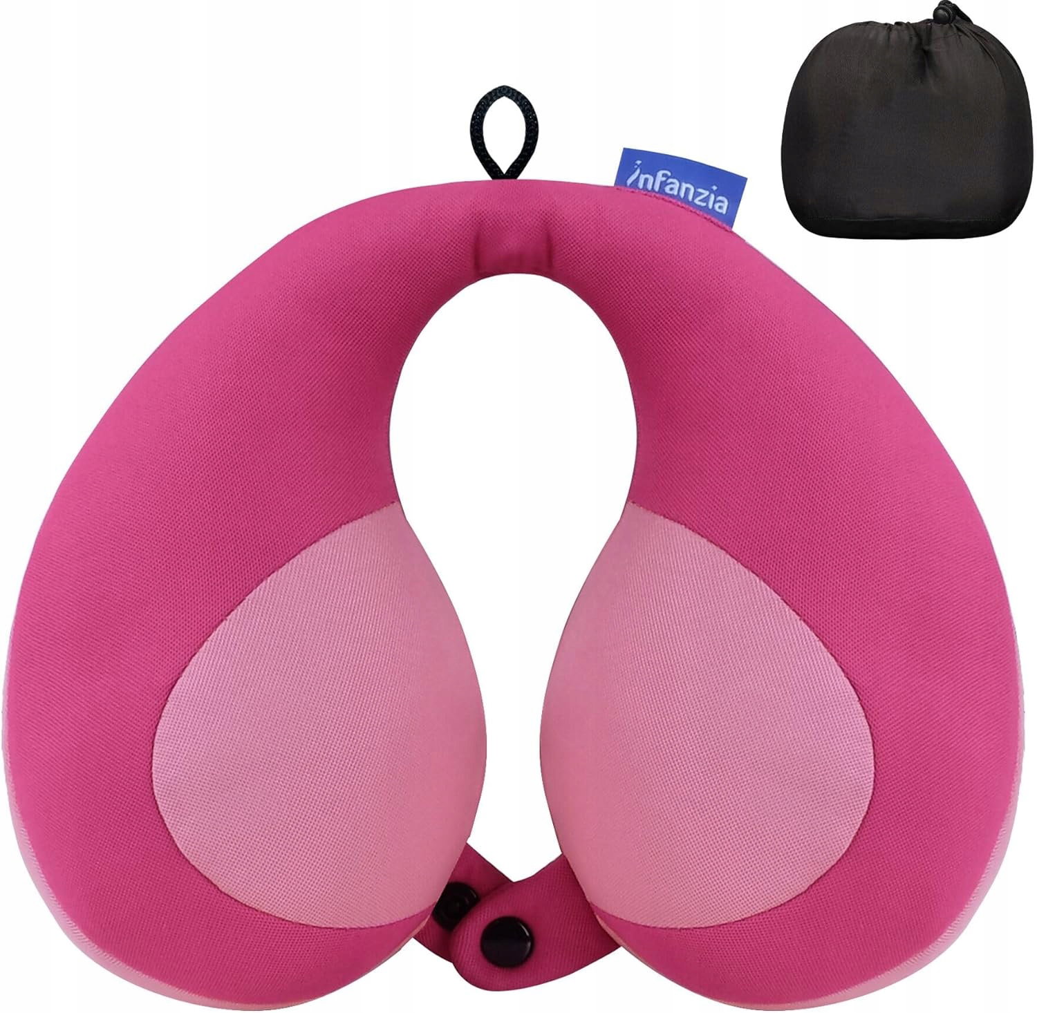 INFANZIA Poduszka ortopedyczna dla dzieci, poduszka podróżna, poduszka szyjna w kształcie litery U, do samochodu, samolotu lub pociągu, prezent dla dzieci (różowa)
