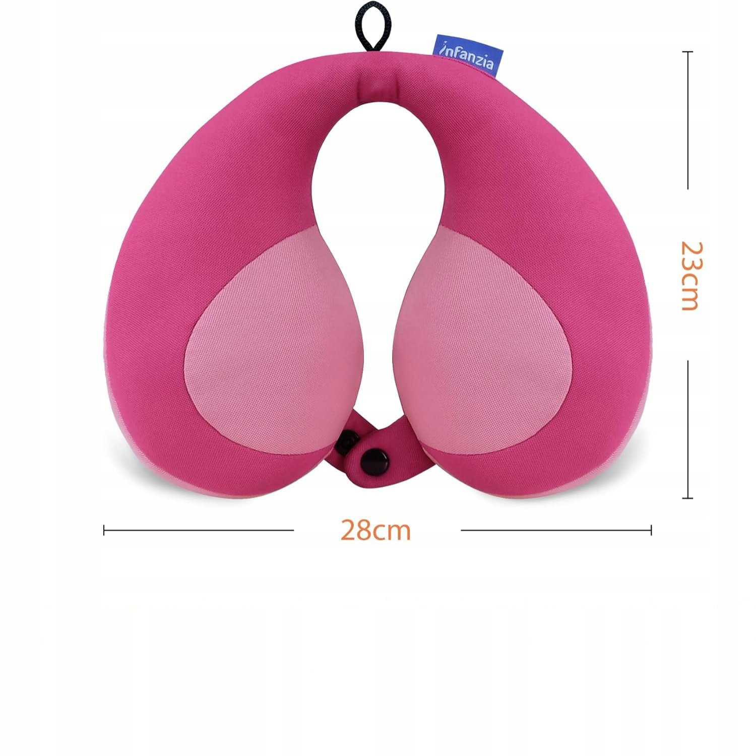 INFANZIA Poduszka ortopedyczna dla dzieci, poduszka podróżna, poduszka szyjna w kształcie litery U, do samochodu, samolotu lub pociągu, prezent dla dzieci (różowa)