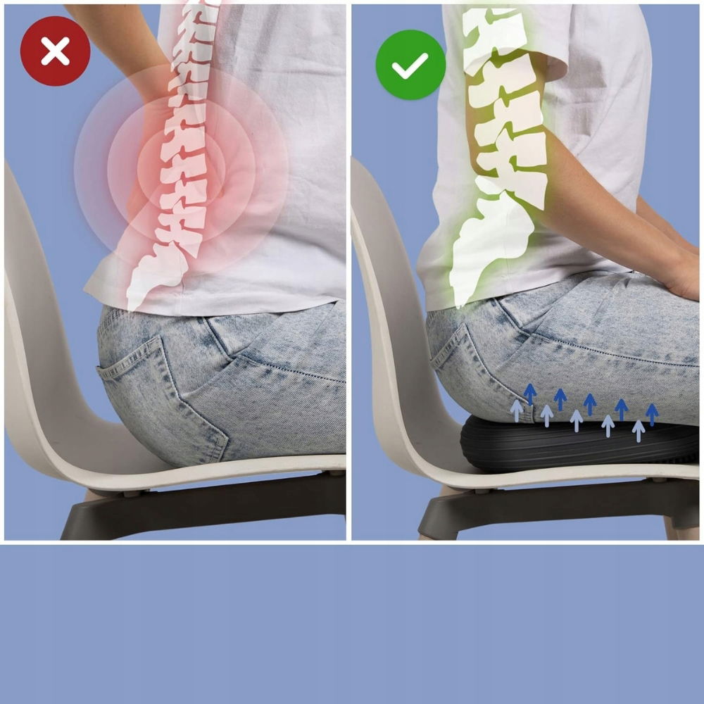Wielofunkcyjna poduszka równoważna, idealna do treningu mięśni głębokich, poprawy postawy i walki z bólem pleców. Doskonała do pracy przy biurku, a także jako siedzisko i oparcie.