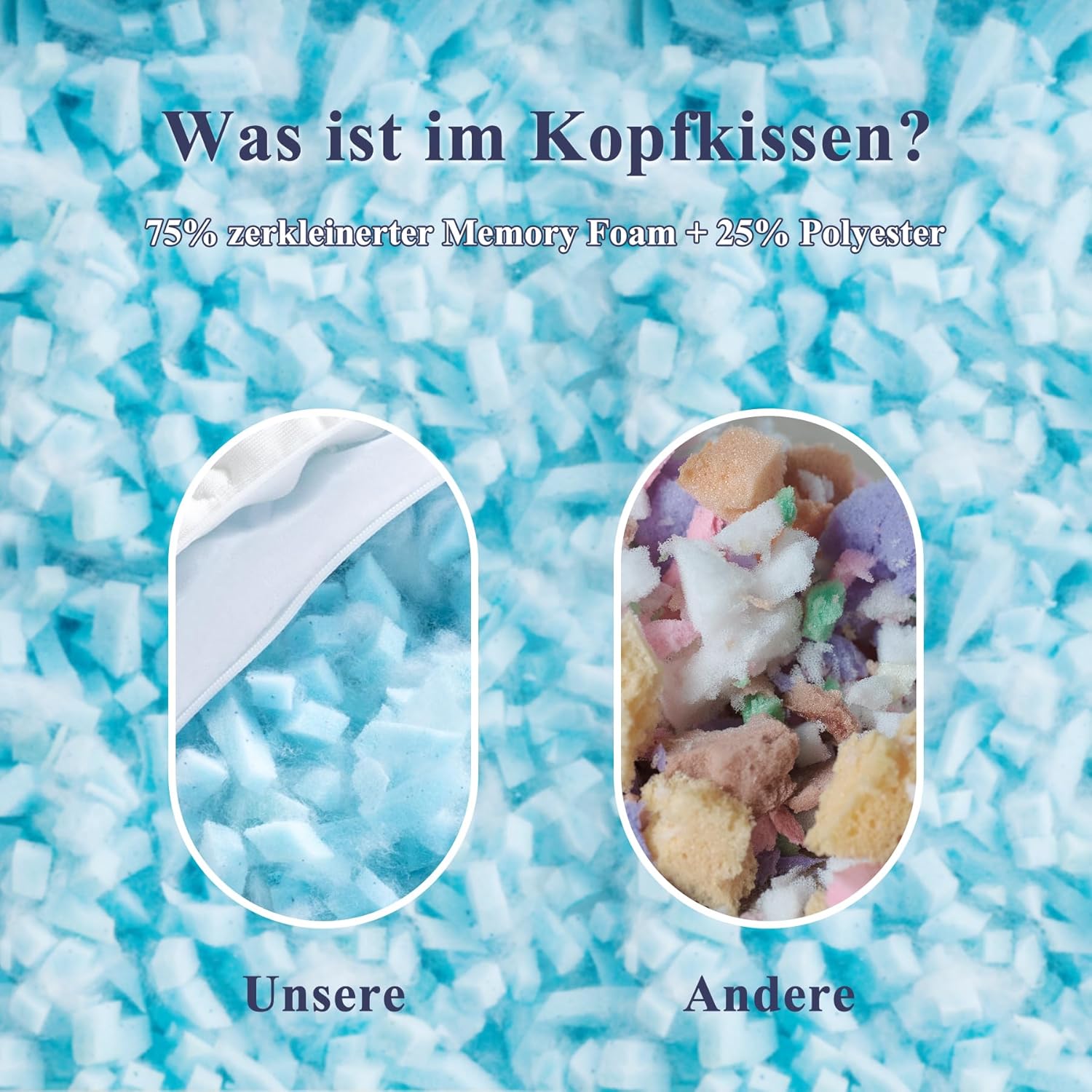 Wypełniona 75% rozdrobnioną pianką memory z żelem oraz 25% włóknem poliestrowym, zapewnia idealne dopasowanie i rozprowadzenie ciepła. Pozwól sobie na chłodny, komfortowy sen dzięki wyjątkowym właściwościom chłodzącym.