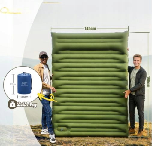 Podwójna mata karimata Wbudowana PompkA 196x145x12cm lekka 2 osoby ZIELONA