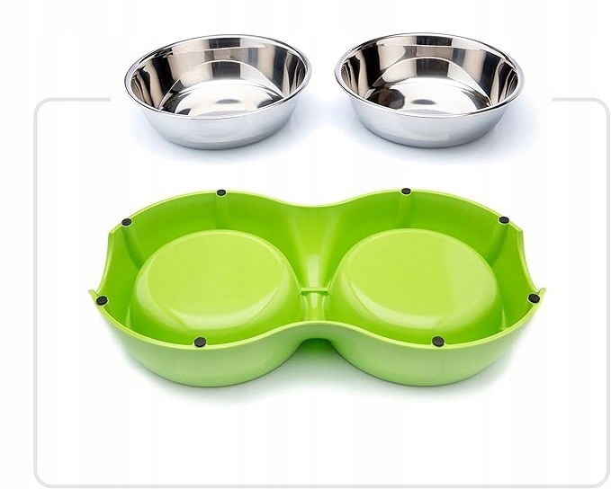 Podwójna Miska melaminowa dla Psa 2x160ml Antypoślizgowa - Zielony