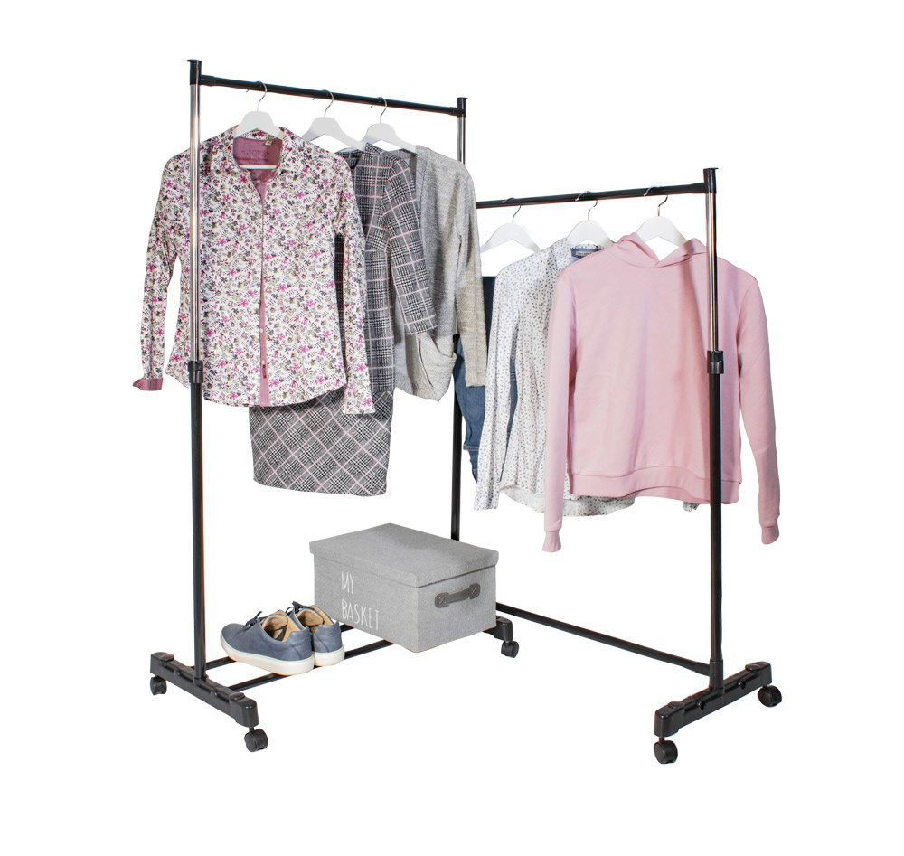 Podwójny stojak na ubrania i buty Twin mobilny z kółeczkami garderoba