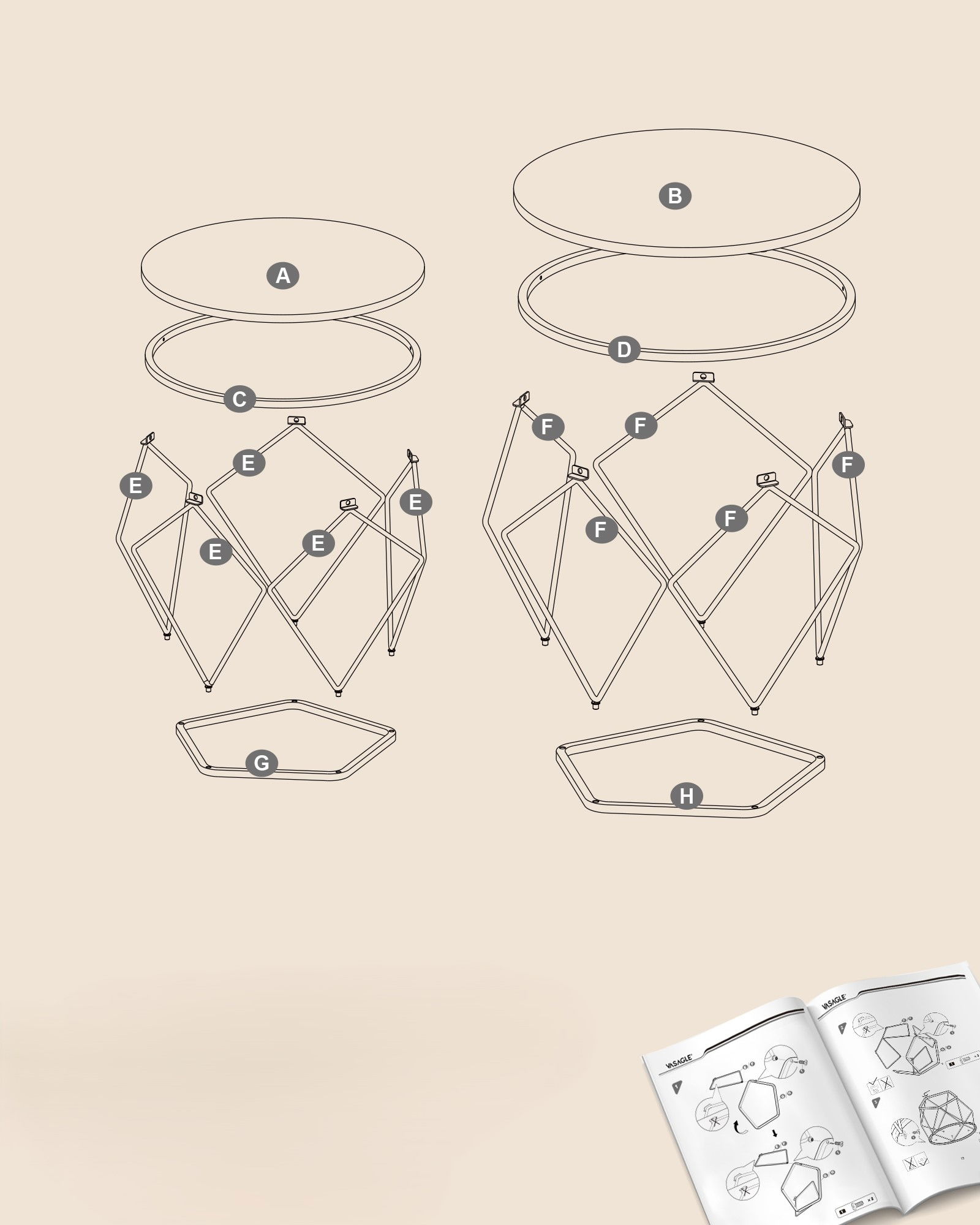 Wymiary dużego stolika: 50 x 40 cm (średnica x wysokość)