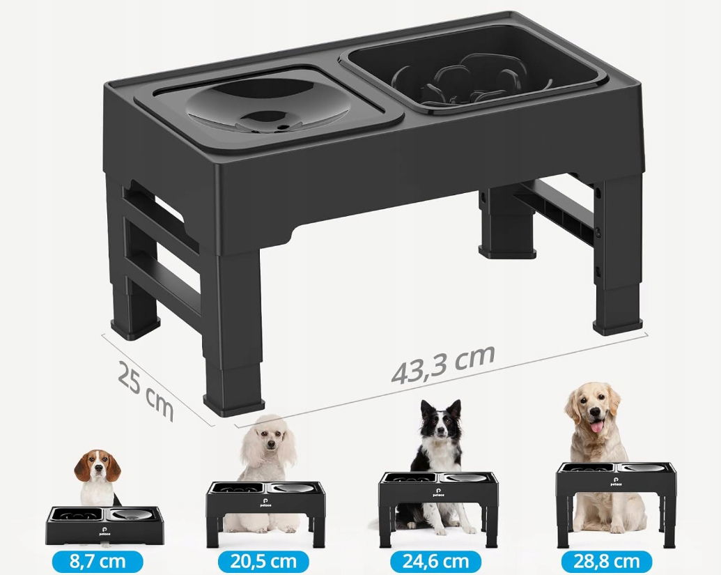 - ✴️Idealne do wszystkich etapów życia: Petace podwyższone miski dla psów można ustawić na 4 różnych wysokościach, aby sprostać potrzebom. Ustaw wysokość po prostu naciskając 4 guziki na nogach stołu na 8,6 cm dla małych szczeniąt i kotów, 20,5 cm, 24,6 cm dla średnich i dużych psów i 28,7 cm dla psów dużych ras