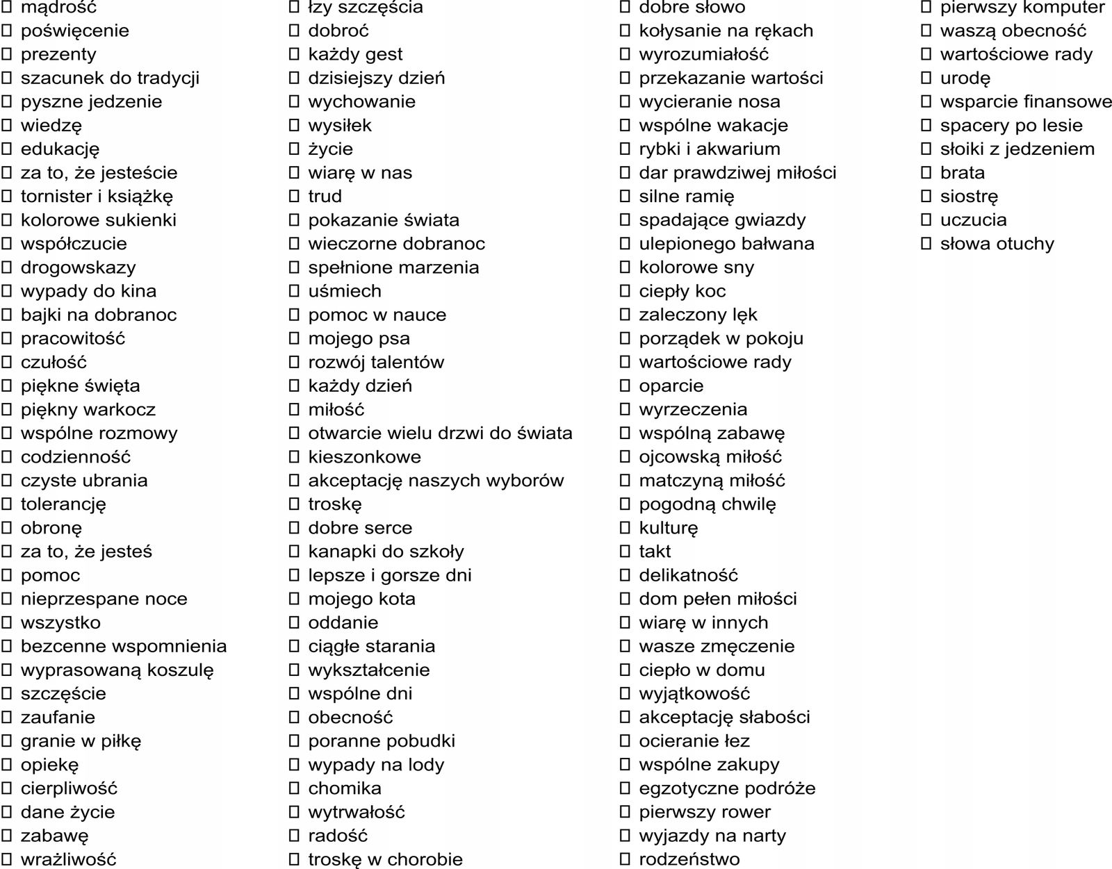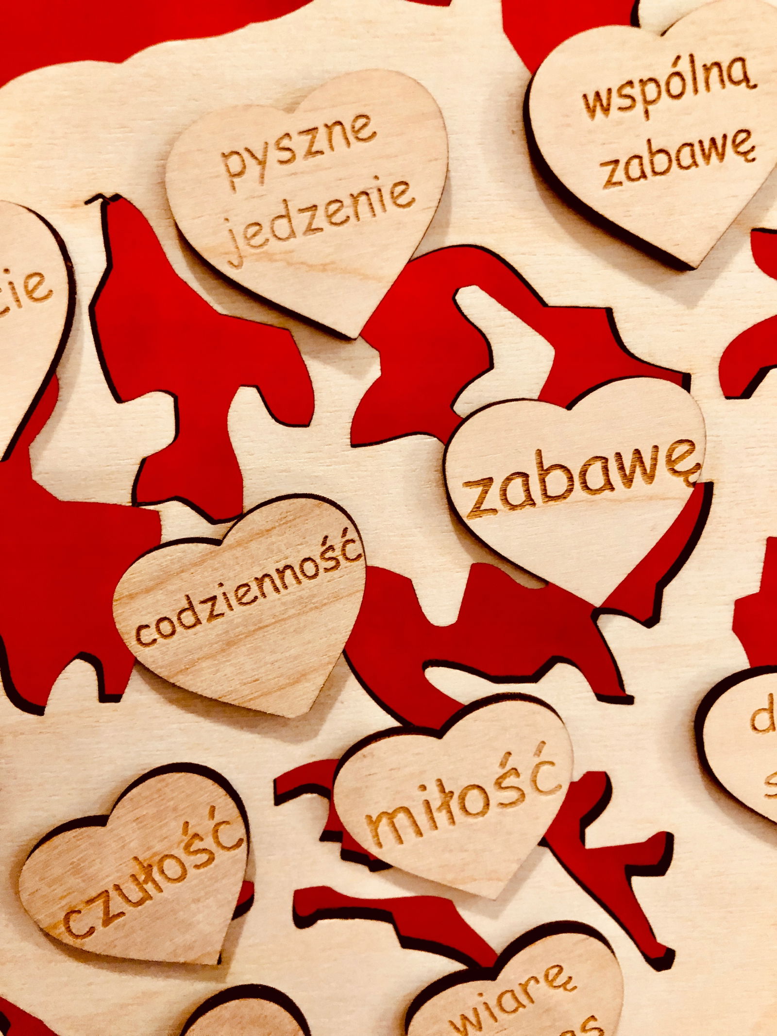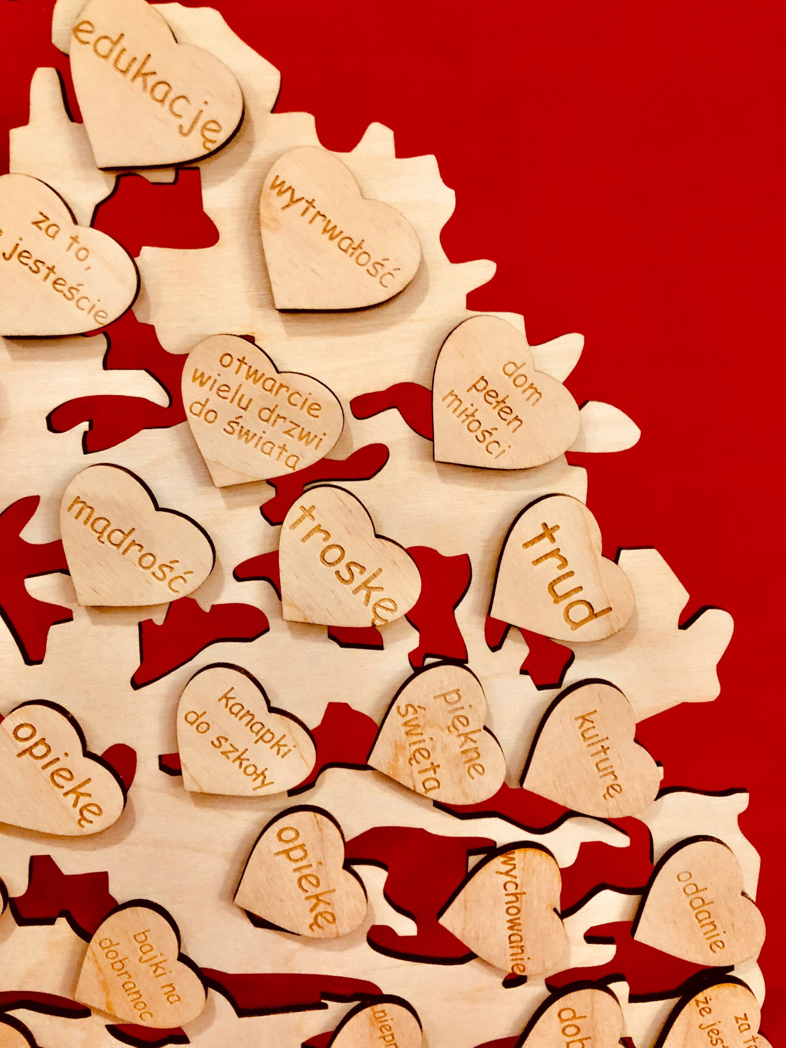 Z uwagi na bardzo dużą różnorodność sentencji jakie są w zestawie, każdy ma możliwość samodzielnie wybrać za co dziękuje, więc serduszka są dołączone luzem do każdego zamówienia wraz ze specjalnym klejem, wystarczy tylko nakleić.
