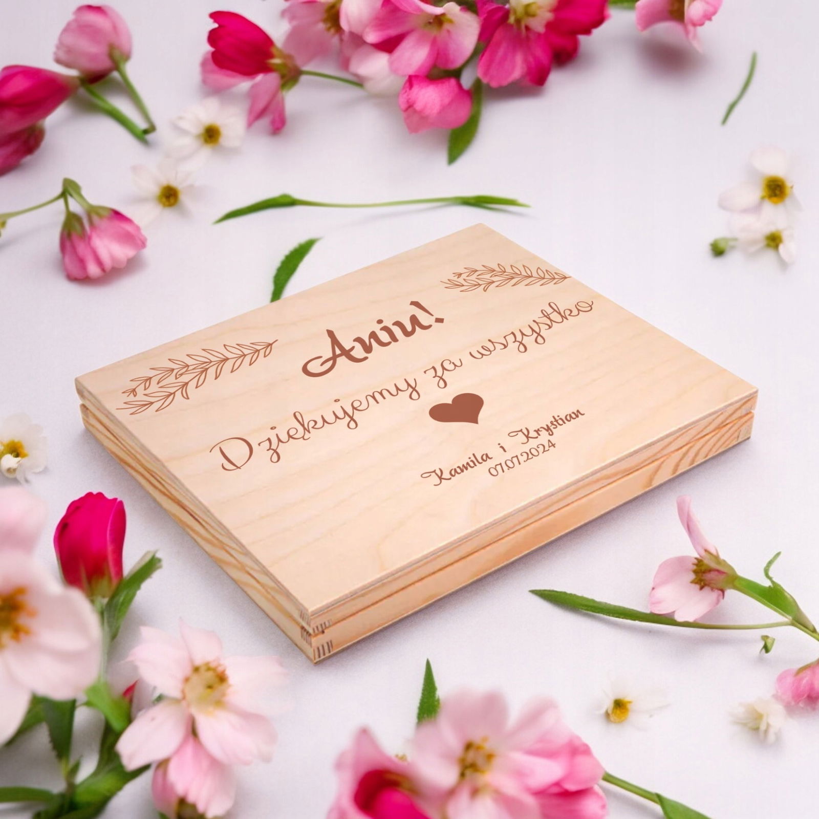 PODZIĘKUJ SWOJEJ ŚWIADKOWEJ W WYJĄTKOWY SPOSÓB. WYBIERZ ELEGANCKIE PUDEŁKO ZE SPERSONALIZOWANYM GRAWEREM.