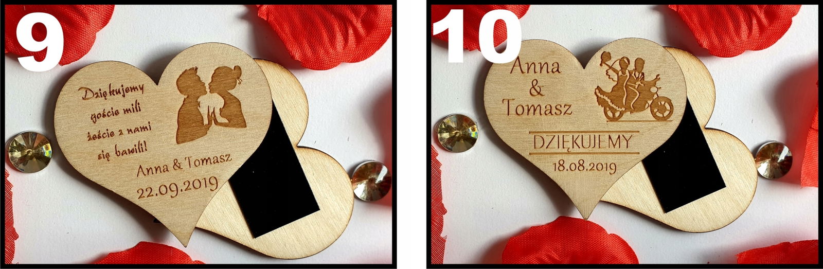 Mamy do zaoferowania eleganckie podziękowania dla gości na wesele, chrzest w formie drewnianych magnesów na lodówkę.