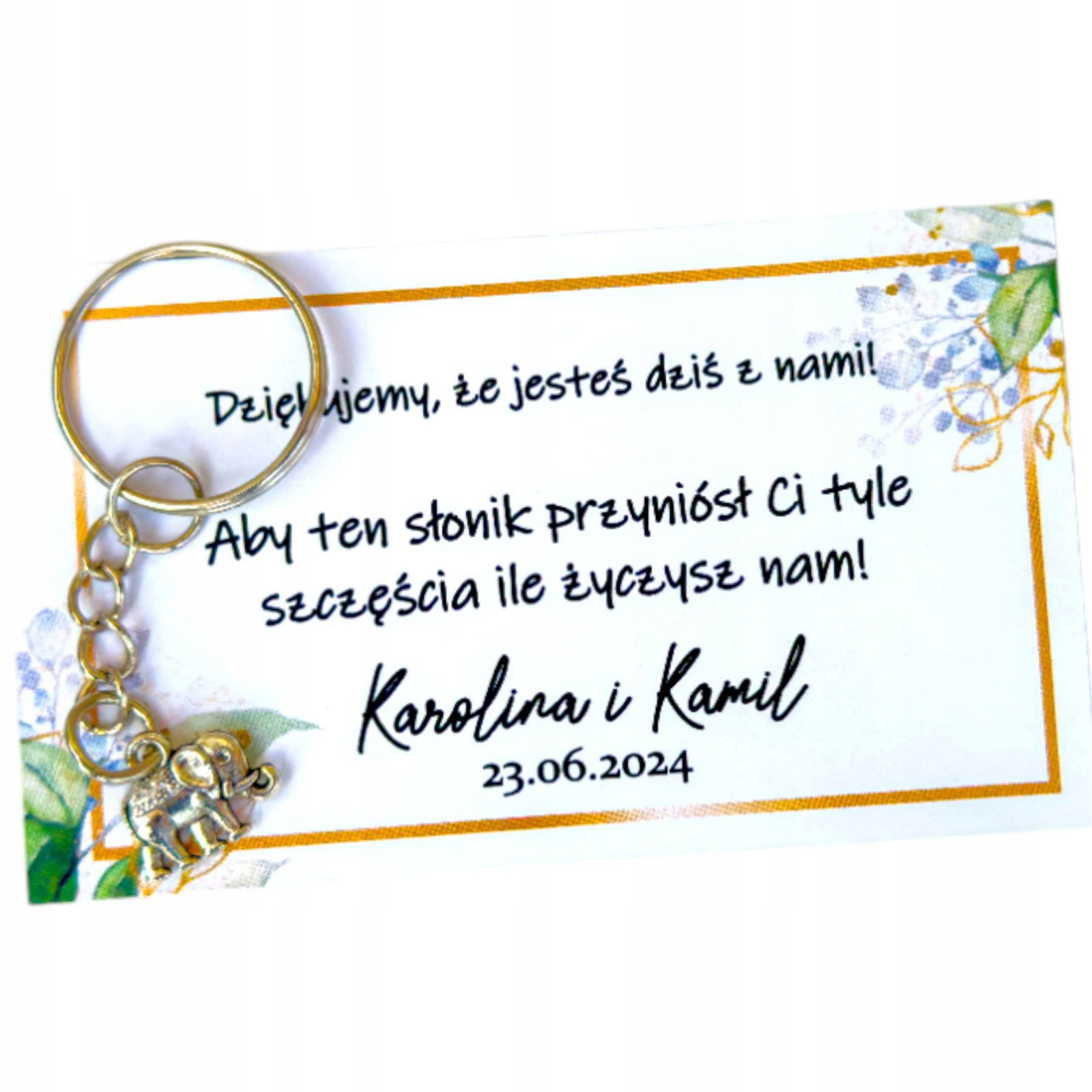 Do breloczka dołączona jest piękna papierowa zawieszka z personalizowanym podziękowaniem