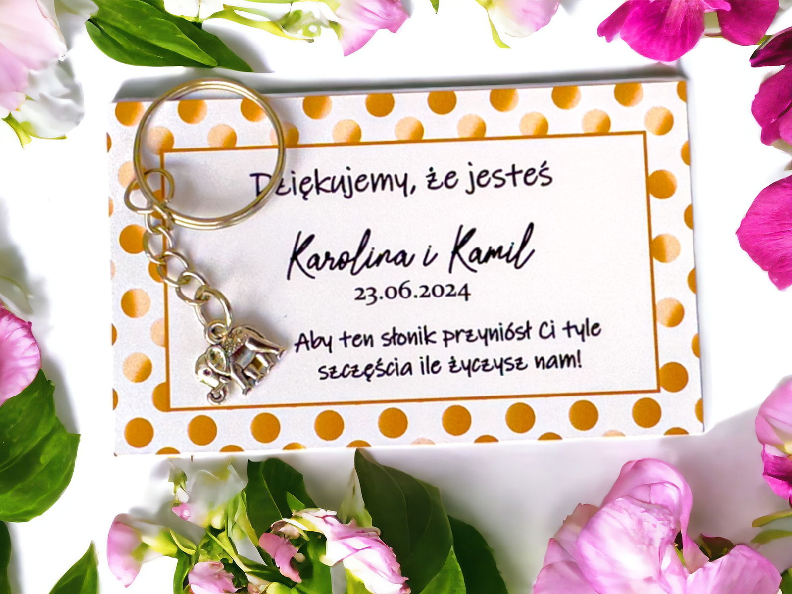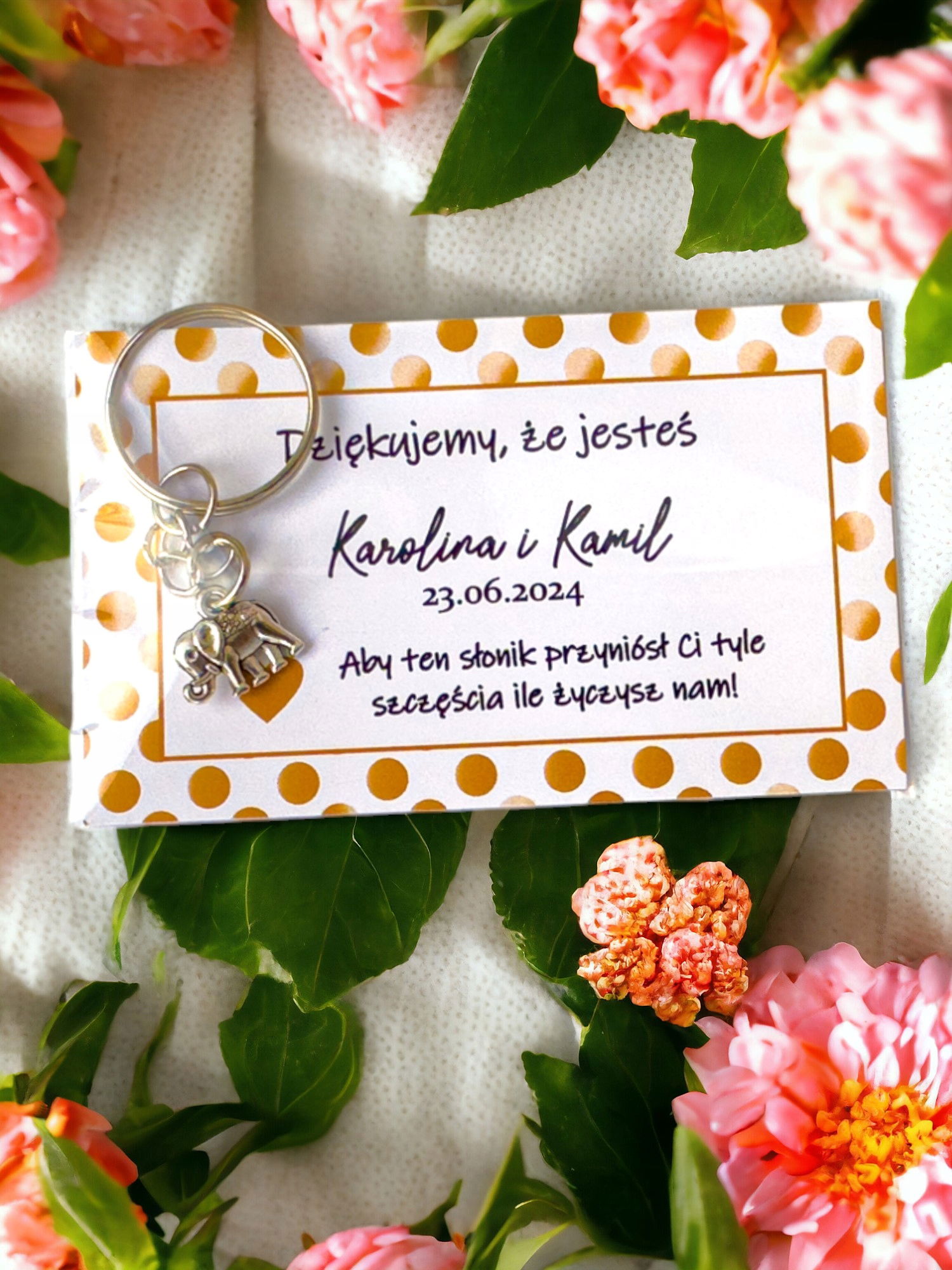 Podziękowanie podziękowania dla gości weselnych Wesele słonik brelok PR 4