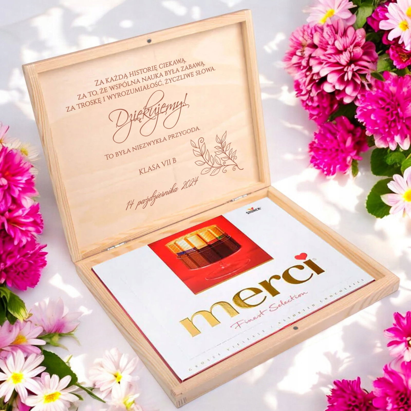 Uwaga! Czekoladki Merci nie są dołączona do skrzynki.