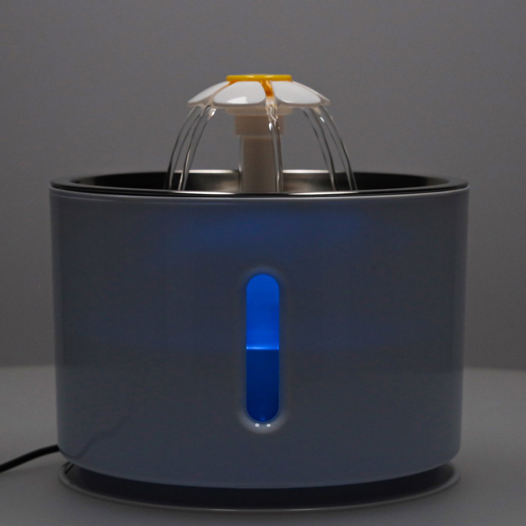 WYGODA DLA OPIEKUNA I PUPILA - Podświetlenie LED ułatwia kontrolę poziomu wody, a przezroczysta ścianka z podziałką informuje, kiedy należy ją uzupełnić. Wystarczy podłączyć kabel USB, by fontanna zaczęła działać. Pojemność 2,4 litra pozwala na dłuższe użytkowanie bez częstego dolewania wody, co szczególnie docenią osoby pracujące poza domem.