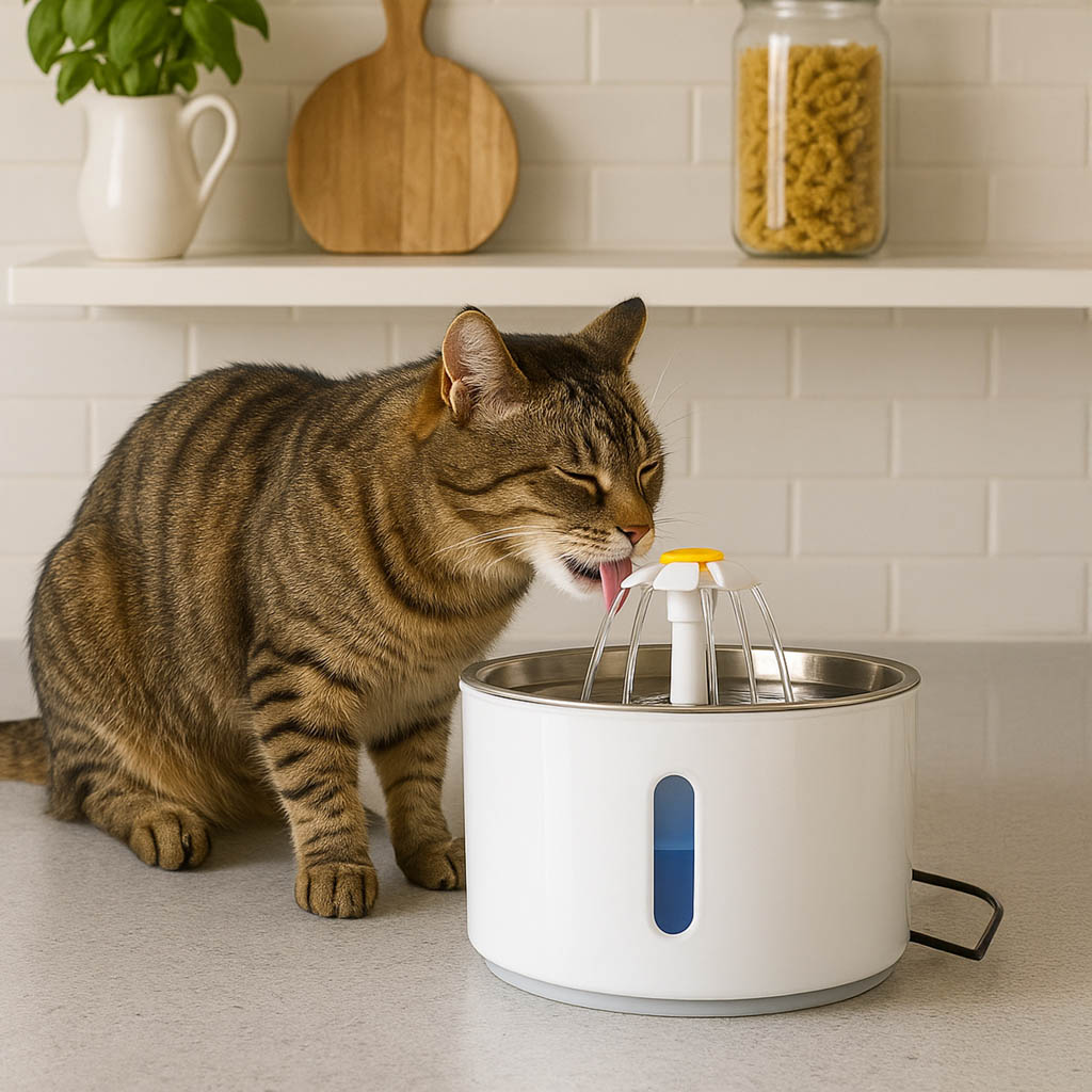 CIĄGŁY RUCH WODY – WIĘCEJ ZDROWIA DLA ZWIERZĘCIA - Poidełko fontanna zostało stworzone z myślą o codziennym komforcie i nawodnieniu psa lub kota. Ruch wody działa naturalnie zachęcająco, co motywuje zwierzęta do częstszego picia, wpływając korzystnie na ich zdrowie. Dzięki automatycznemu obiegowi woda pozostaje świeża i chłodna, a jednocześnie wolna od stojących zanieczyszczeń.