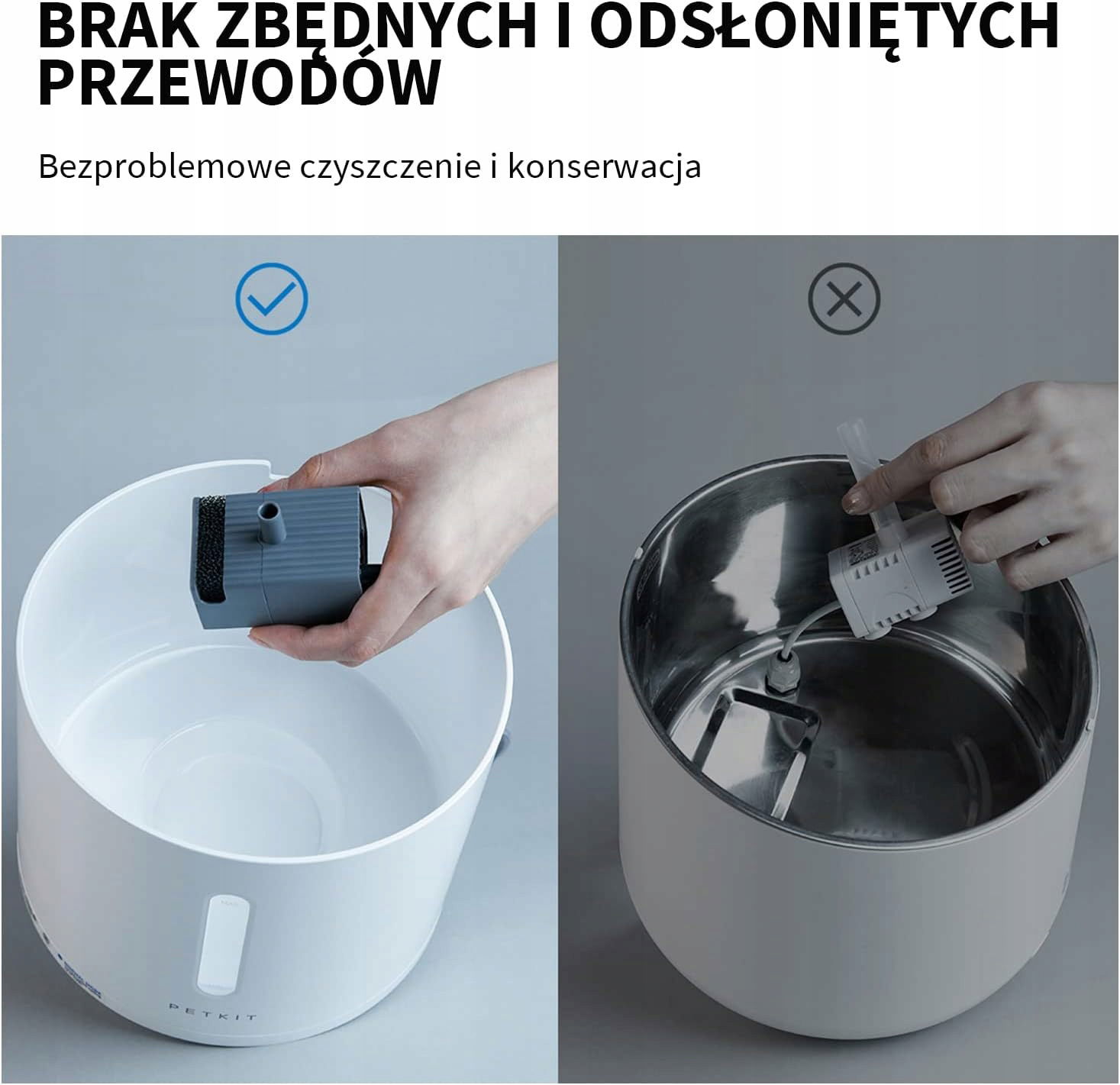 - Pompa bez kabli w zbiorniku – 100% bezpieczeństwa dla kota