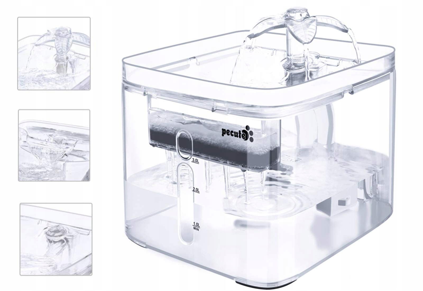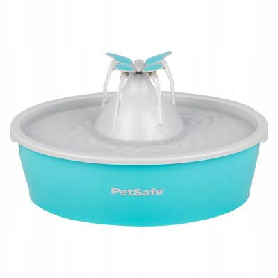 Górna część przypominająca motyla rozprowadza wodę w czterech strumieniach – przyciąga uwagę zwierzaka i zachęca do picia