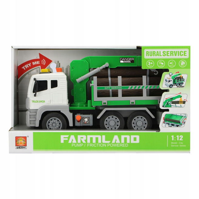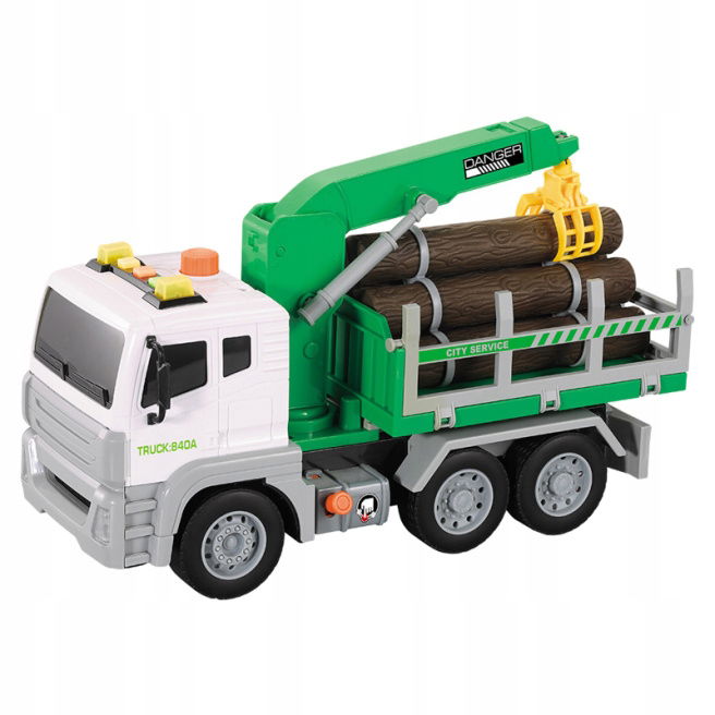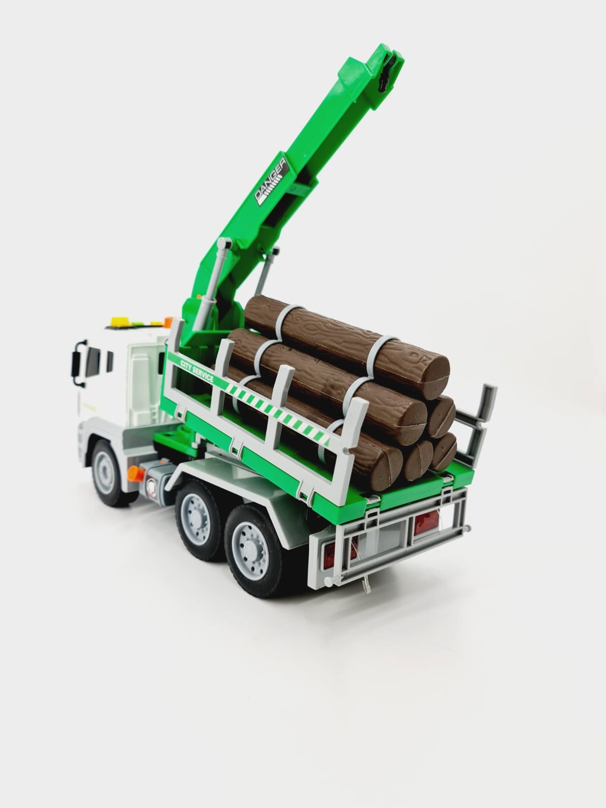 Przedstawiamy miniaturę ciężarówki przeznaczoną do przewozu drewna, która przeniesie Twoje dziecko w głąb leśnych ostępów, gdzie może wcielić się w rolę zarówno kierowcy, jak i leśnika.