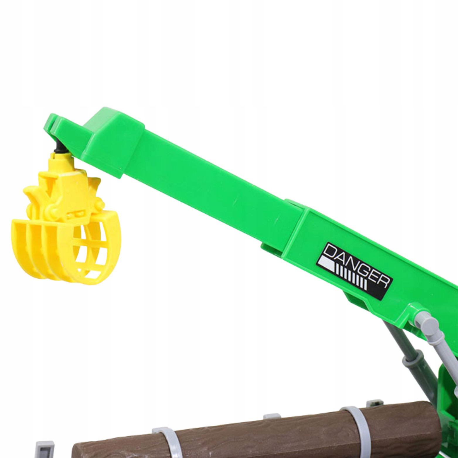 Realistyczne Detale: Ta starannie zaprojektowana ciężarówka posiada naczepę wypełnioną belami drewna, które można dowolnie przewozić, dodając do zabawy elementy logistyczne.