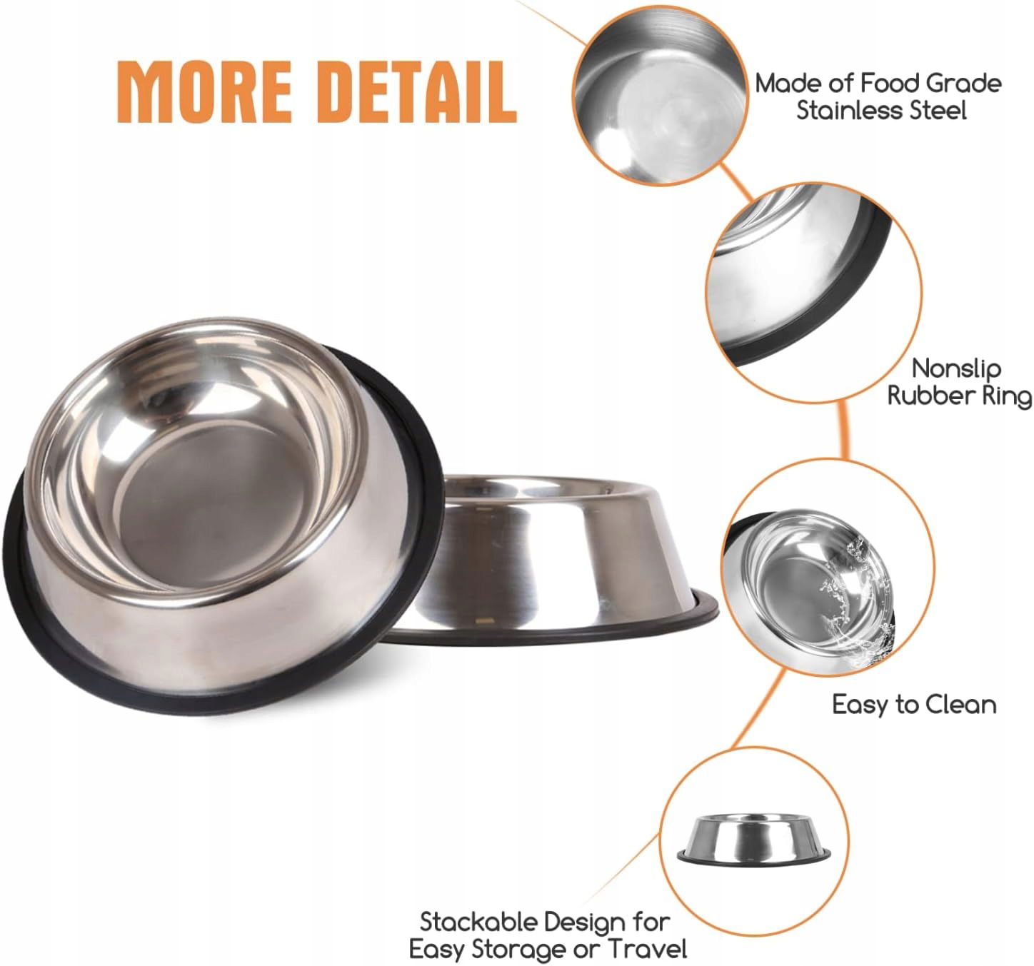 【WYMIARY I POJEMNOŚĆ】 - Wysokość 2,05 cala (5,2 cm), średnica dna 8,86 cala (22,5 cm). Idealna miska do karmienia do przechowywania suchej lub mokrej karmy, smakołyków i wody, odpowiednia dla zwierząt domowych do codziennego użytku. 【ANTI-SLIP DESIGN】 - gumowy pierścień umieszczony na spodzie zapobiega drapaniu podłogi i zmniejsza hałas, gdy pies jest spragniony lub głodny, dzięki czemu posiłki są mniej niechlujne. Poszerzenie dna sprawia, że miska jest bardziej stabilna i nie musisz się już martwić, że kochający pies przewróci miski. 【WYGODA PRZECHOWYWANIA LUB PODRÓŻY】 - Dzięki przemyślanej i wygodnej konstrukcji miski te można łatwo układać w stosy, co ułatwia ich przechowywanie lub podróżowanie. Trwałe dla długotrwałego i zdrowego użytkowania dla ukochanych czworonożnych towarzyszy. 【 MATERIAŁ ZE STALI NIERDZEWNEJ】 - Miska dla psa Nobleza jest wykonana z wysokiej jakości stali nierdzewnej, która jest nierdzewna, bezwonna, odporna na korozję i rdzę. Zewnętrzna część miski dla psa jest wypolerowana na lustrzany połysk, a unikalny design sprawia, że zwierzęta uwielbiają ją jeszcze bardziej. Wszystkie materiały przeszły międzynarodowe testy bezpieczeństwa. 【ŁATWE W CZYSZCZENIU】 - Miski dla psów Nobleza wykonane ze stali nierdzewnej można łatwo czyścić łagodnym płynem do naczyń i ciepłą wodą. Ponadto można je również myć w zmywarce, co ułatwia ich czyszczenie. Ponadto gumowy pierścień można zdjąć, aby dokładnie umyć miski w zmywarce.