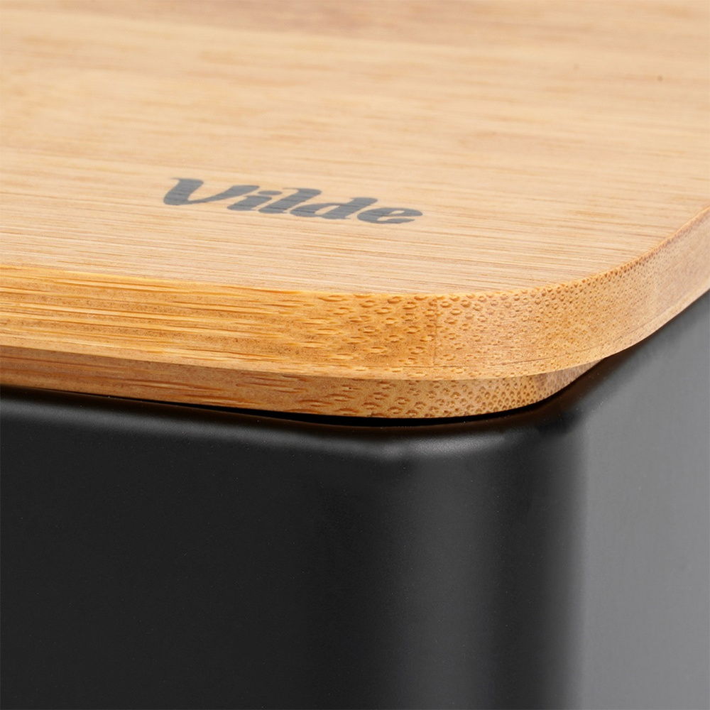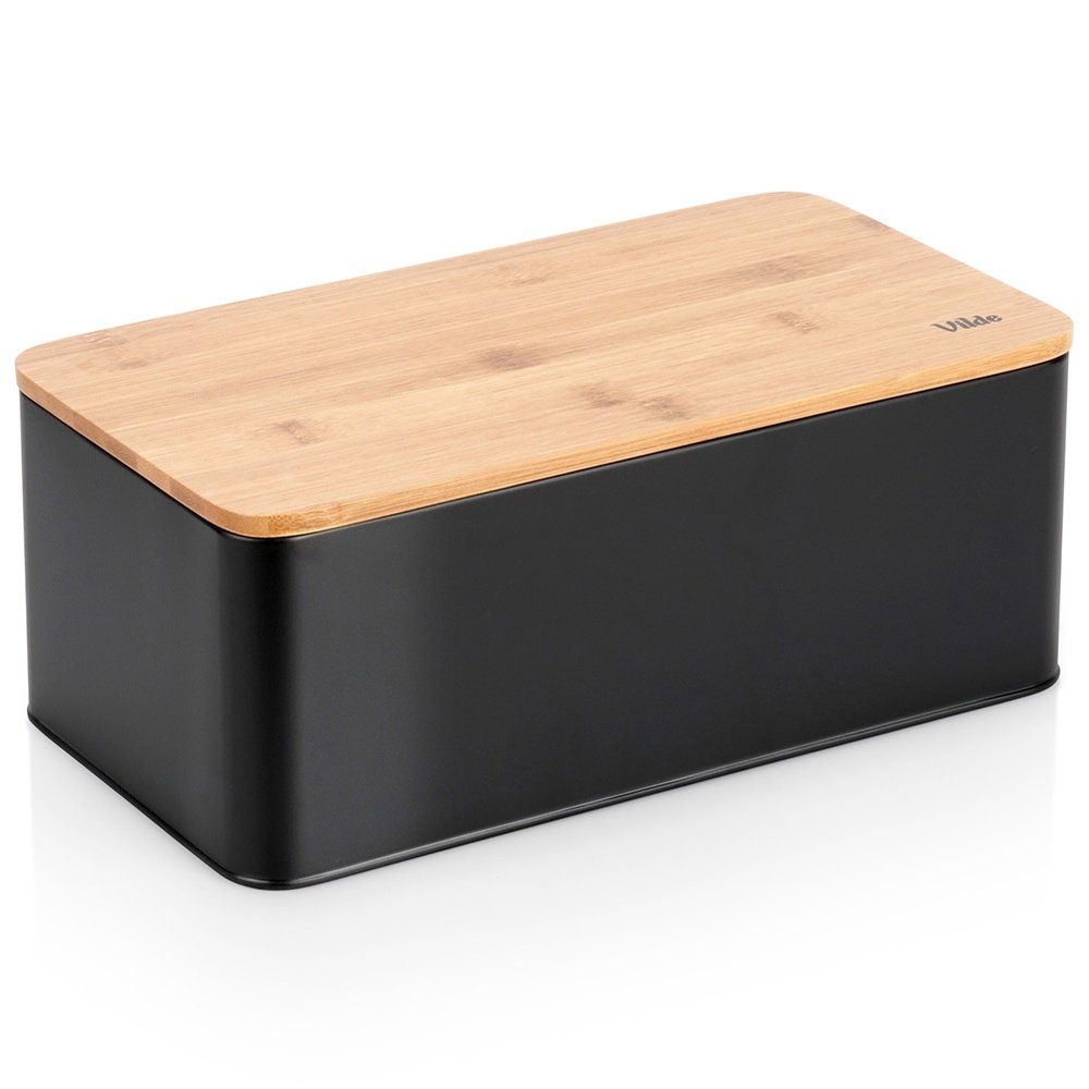POJEMNIK CHLEBAK NA PIECZYWO CHLEB BUŁKI Z DESKĄ BAMBUSOWĄ KUCHENNY CZARNY