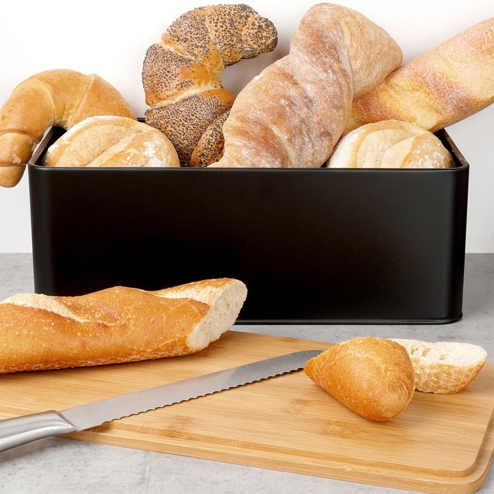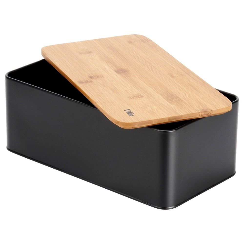 Pojemnik Chlebak na Pieczywo Chleb Bułki z Deską Bambusową Kuchenny Czarny