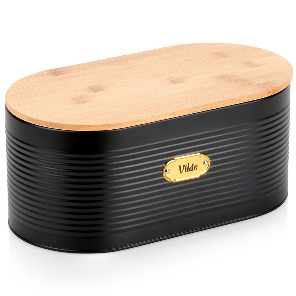 POJEMNIK CHLEBAK NA PIECZYWO CHLEB BUŁKI Z DESKĄ BAMBUSOWĄ KUCHENNY CZARNY