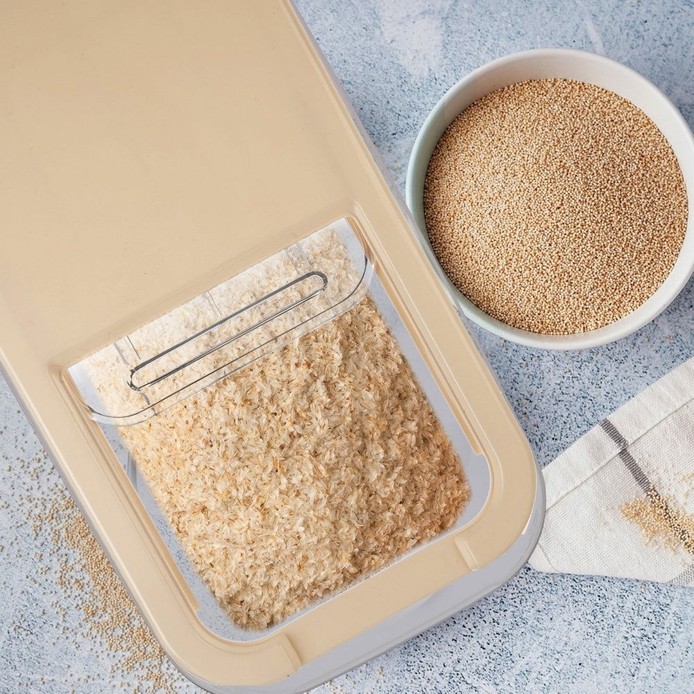 Pojemnik do przechowywania różnych produktów. Posiada pokrywkę z przesuwnym zamknięciem, co zapewni komfort użytkowania. Pojemnik ma dużą pojemność i umożliwia łatwe uporządkowanie artykułów spożywczych oraz innych akcesoriów. Świetnie sprawdzi się zarówno w kuchni, spiżarni, łazience, jak i w innych pomieszczeniach. Niezwykle wygodny i poręczny w użytkowaniu. Pozwoli na odpowiednie przechowywanie i dozowanie produktów, wprowadzając ład i porządek.