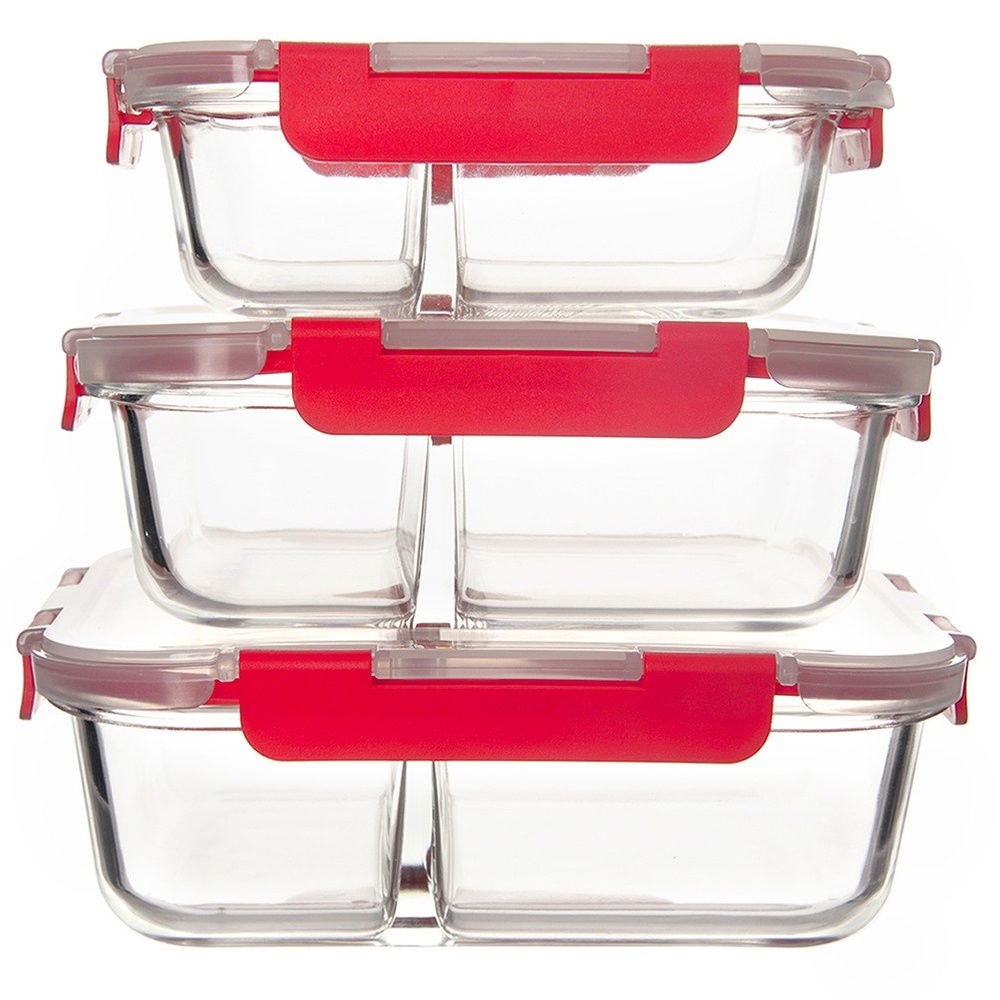 Pojemnik Dzielony Kuchenny Szklany na Żywność z Uszczelką Lunchbox 1,3L