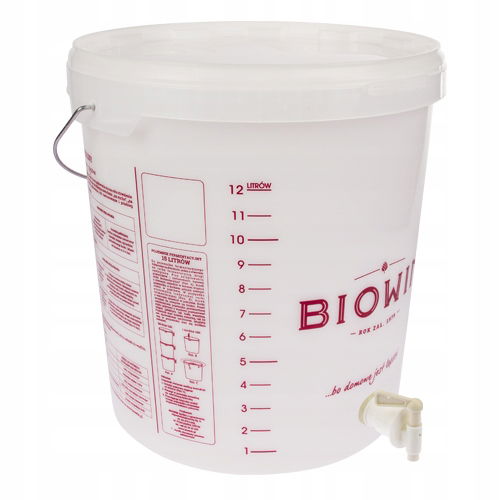 Na pojemnikach jest nadrukowana skala z pojemnością (z dwóch stron pojemnika) oraz cenne porady w przygotowaniu domowego wina, piwa oraz wędlin.