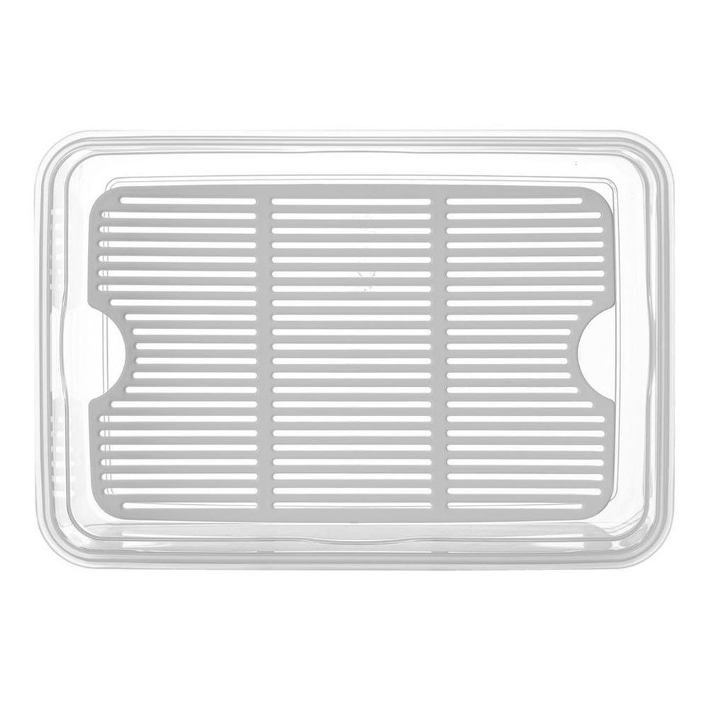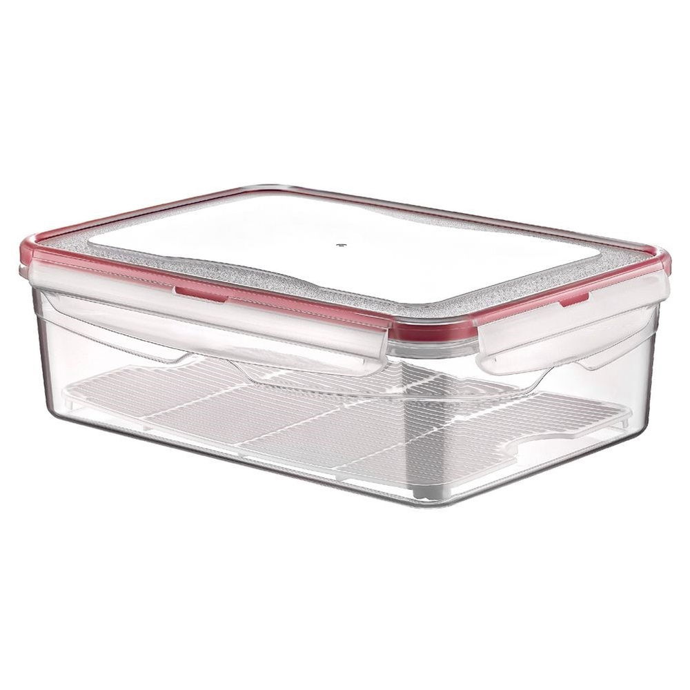 FUNKCJONALNY - Wyposażony w specjalną kratkę gwarantującą odpowiednią cyrkulację powietrza. Dzięki niej przechowywane produkty spożywcze nie leżą na dnie pojemnika. Pokrywka jest wyposażona w cztery solidne klipsy, które umożliwiają pewne zamknięcie. Dodatkowo, pokrywka posiada uszczelkę, która zapewnia szczelność i świeżość przechowywanych produktów.
