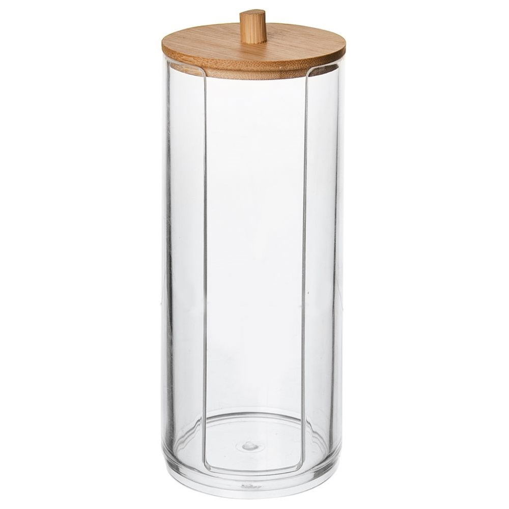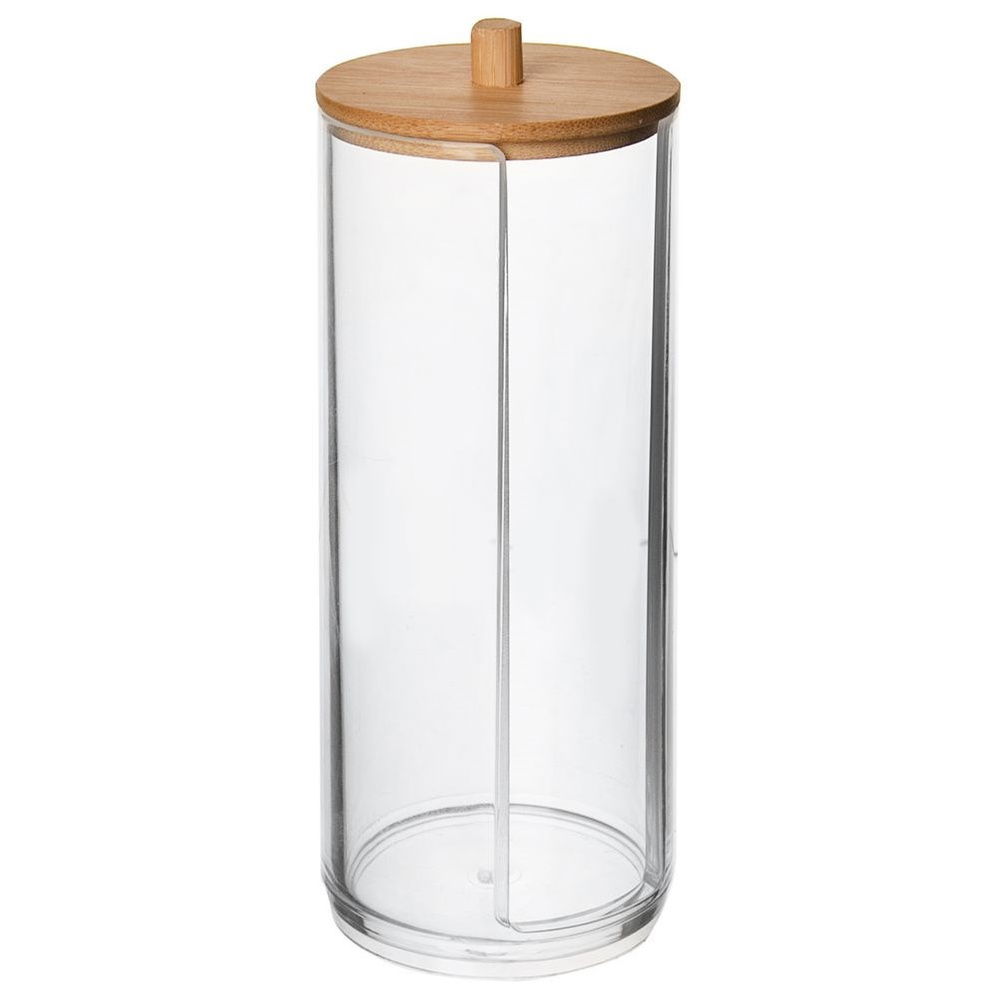SOLIDNY - Wykonany z wysokiej jakości, przezroczystego akrylu. Wyposażony w pokrywkę wykonaną z drewna bambusowego. Pojemnik jest solidny i wytrzymały.