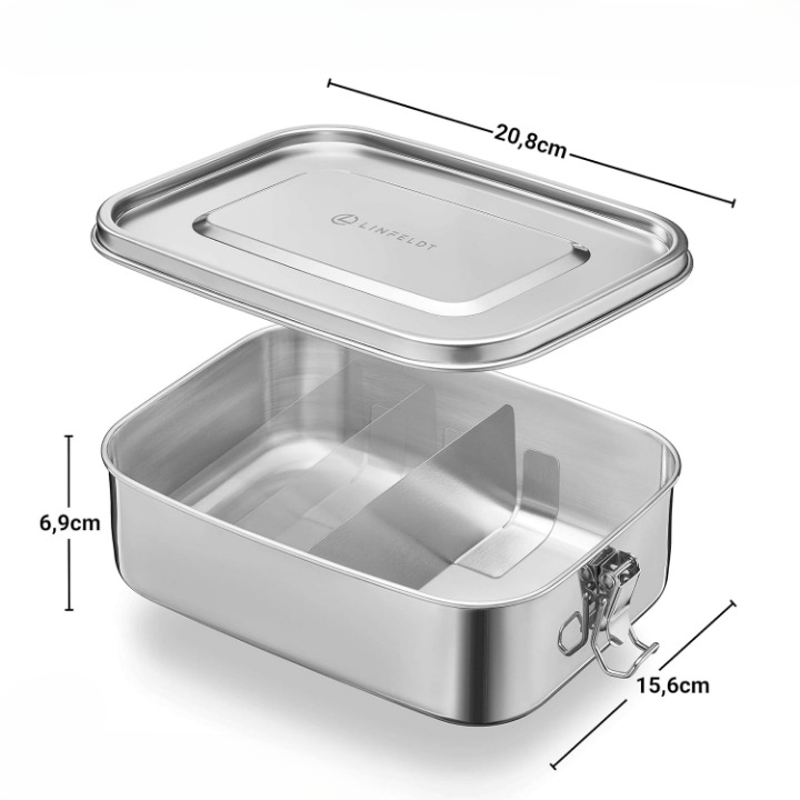 Pojemnik na kanapki ma pojemność 1400 ml i jest w 100% szczelny! Bez obaw przetransportuj potrawy z sosami itp. – metalowe pudełko Cię nie zawiedzie.