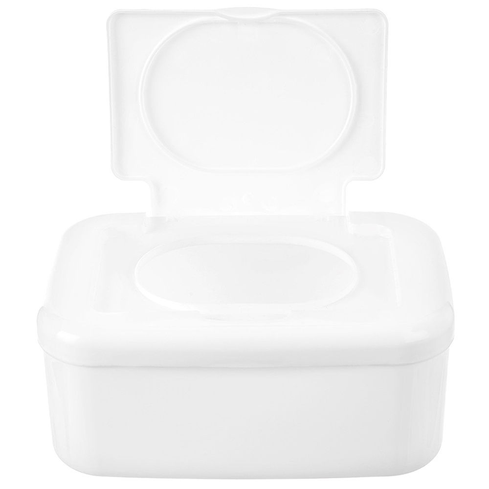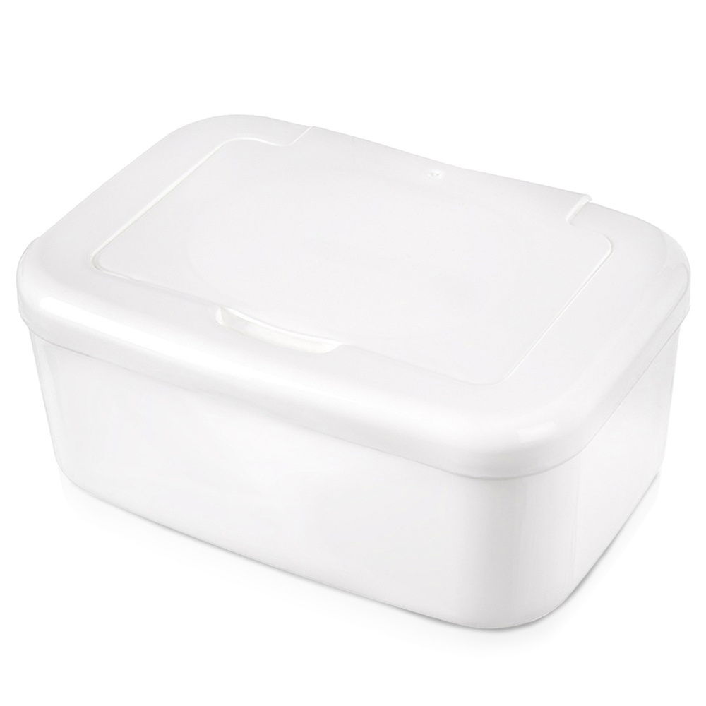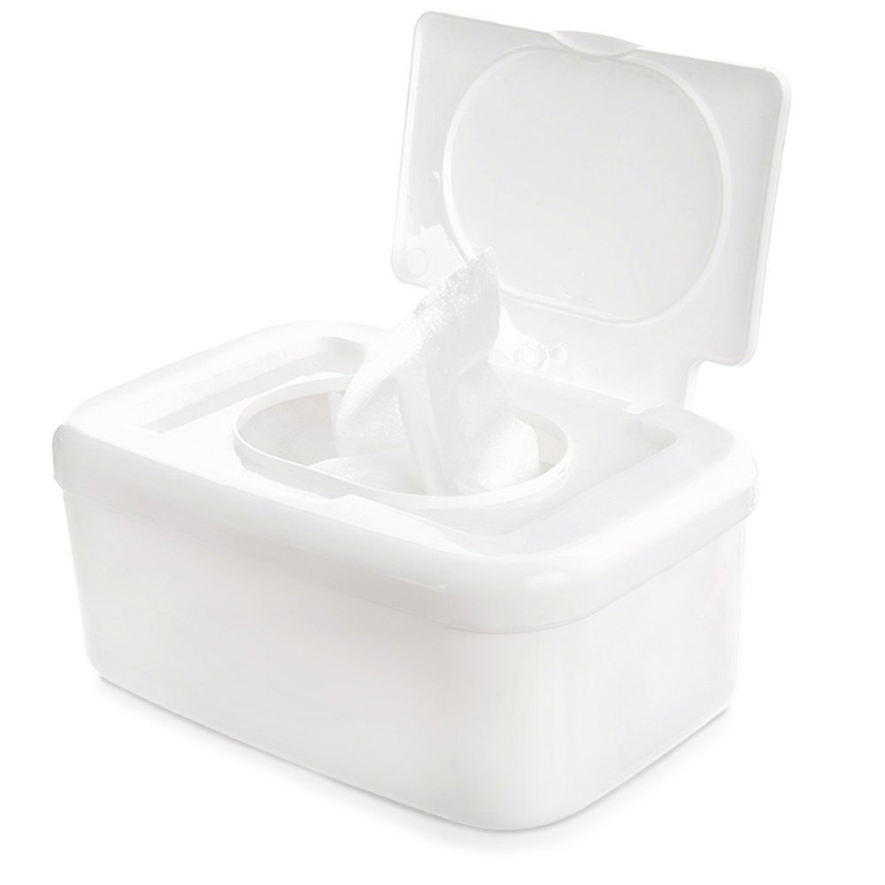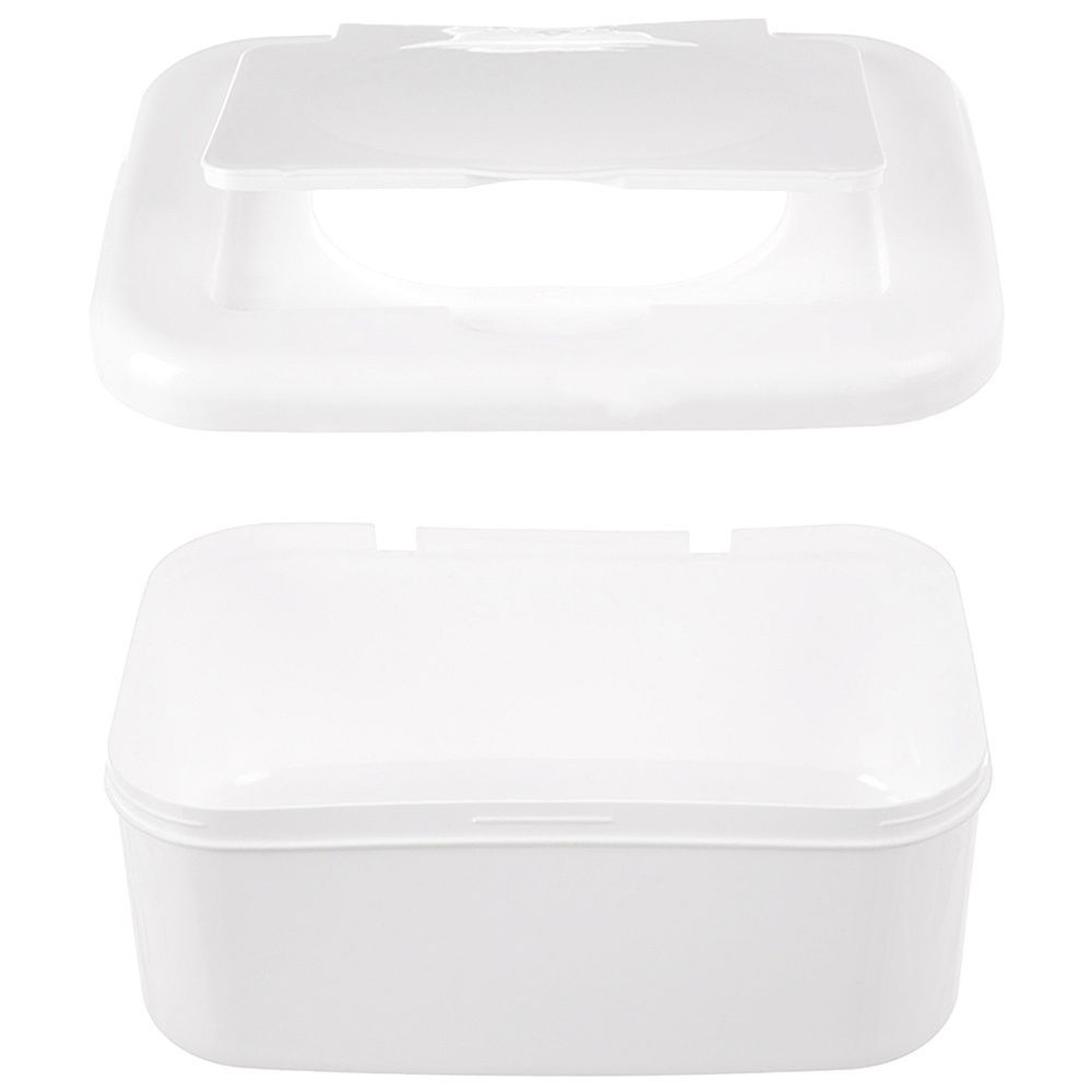 Pojemnik na chusteczki nawilżane - Praktyczny pojemnik, który zapobiega wysychaniu chusteczek nawilżanych dla dzieci i ułatwia ich przechowywanie. Pojemnik ma wymiary 18,5 x 13 x 8 cm.