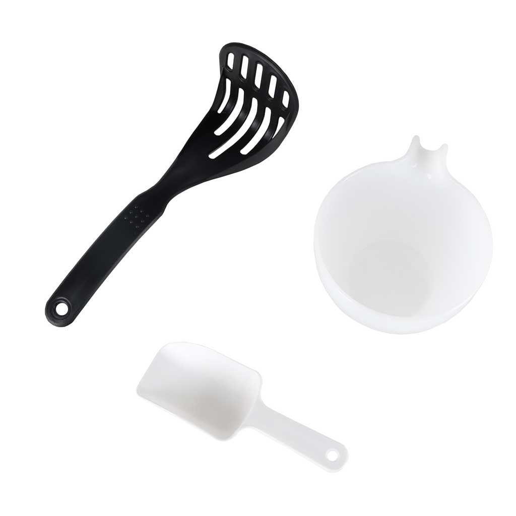 - Praktyczne akcesoria - zestaw domowego kompostownika zawiera funkcjonalne narzędzia, takie jak ubijak do zagęszczania bioodpadów oraz łyżkę do ich wygodnego nakładania i mieszania i inne