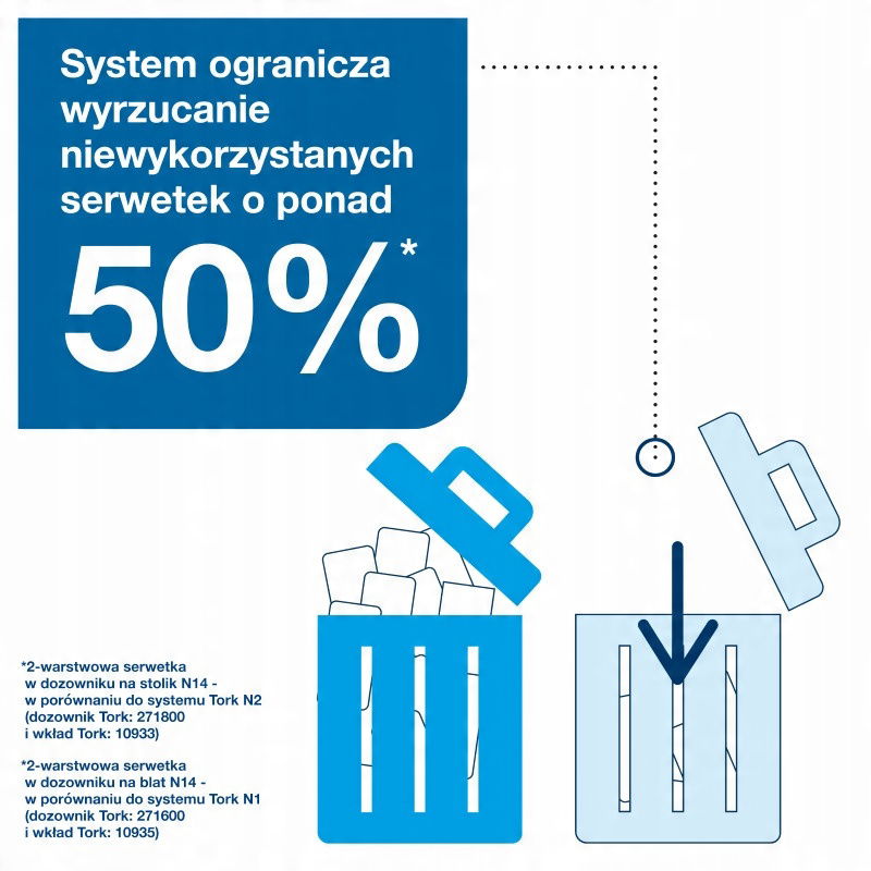 Wskaźnik poziomu napełnienia wskazuje, kiedy nadszedł czas na napełnianie, dzięki czemu serwetki są zawsze dostępne. Dzięki temu puste dozowniki serwetek podczas uderzeń należą do przeszłości