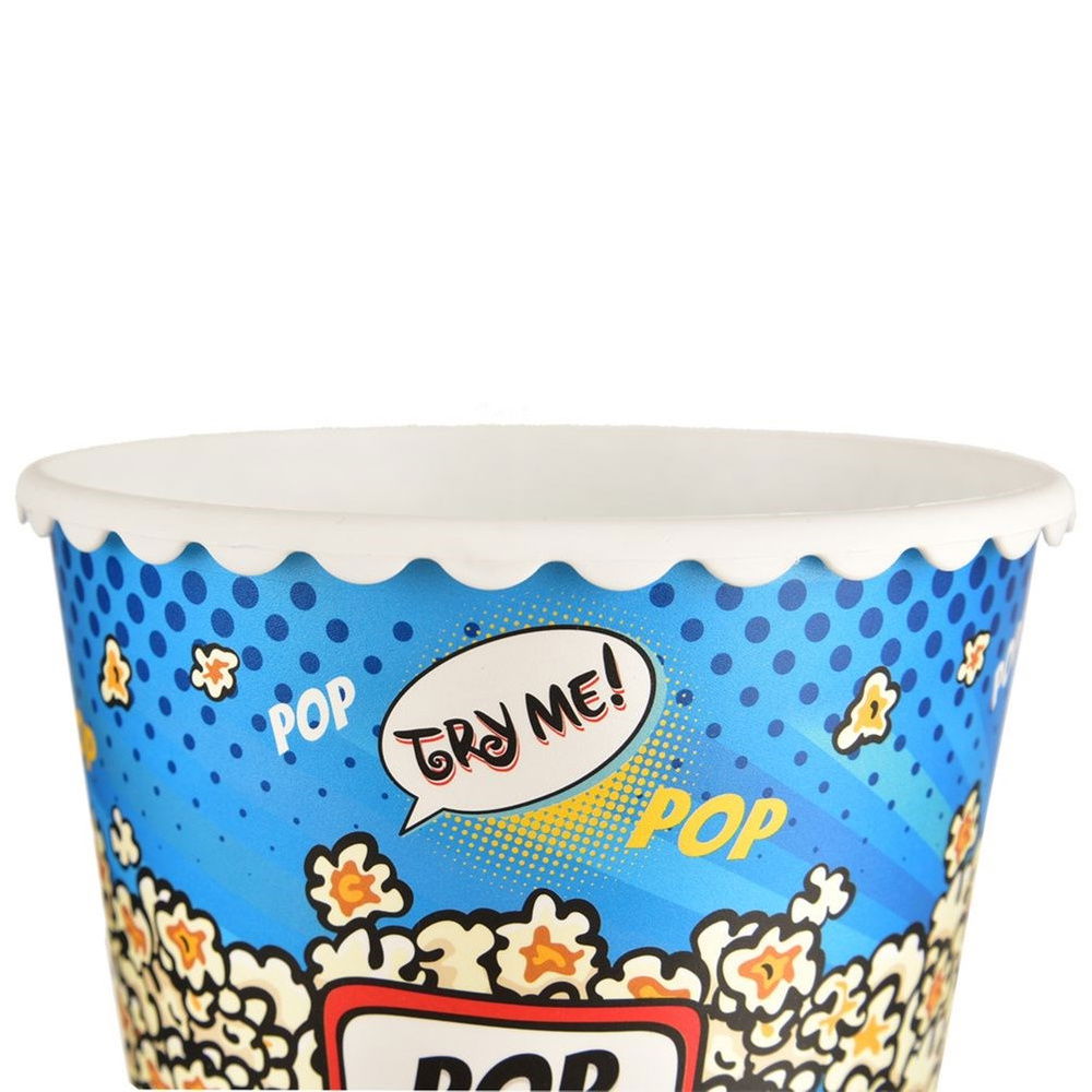 Pojemnik na popcorn i chipsy o pojemności 2,3 litra. Wygodny w użytkowaniu pomieści dużą ilość popcornu. Pojemnik posiada dekor w postaci motywu popcornu, dlatego prezentuje się niezwykle efektownie. Świetnie sprawdzi się podczas domowych seansów oraz podczas imprez zarówno dla dzieci jak i dorosłych. Wykorzystamy go również na słodkich stołach, wówczas umieszczony w nich popcorn prezentuje się niezwykle efektownie. Kubek jest świetnym pomysłem na prezent dla wszystkich miłośników filmów w domowym zaciszu oraz popcornu. Pojemnika nie należy myć w zmywarce do naczyń ani użytkować w mikrofalówce.