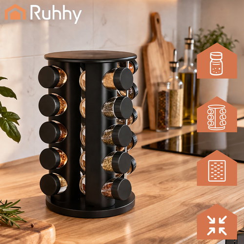 Zestaw pojemników na przyprawy Ruhhy 20 szt. + stojak obrotowy 360° organizer