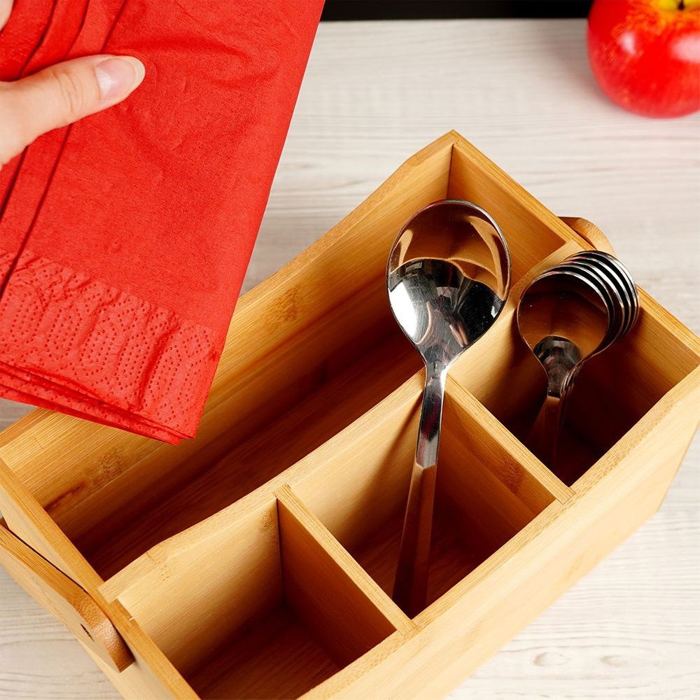 POJEMNIK NA SZTUĆCE SOSY PRZYPRAWY STOJAK KOSZYK BAMBUSOWY NOSIDEŁKO