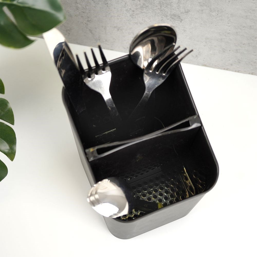 KLASYCZNY DESIGN - Ociekacz na sztućce utrzymany w klasycznym stylu. Posiada modny, czarny kolor. Będzie stanowił element dekoracyjny w każdej kuchni.
