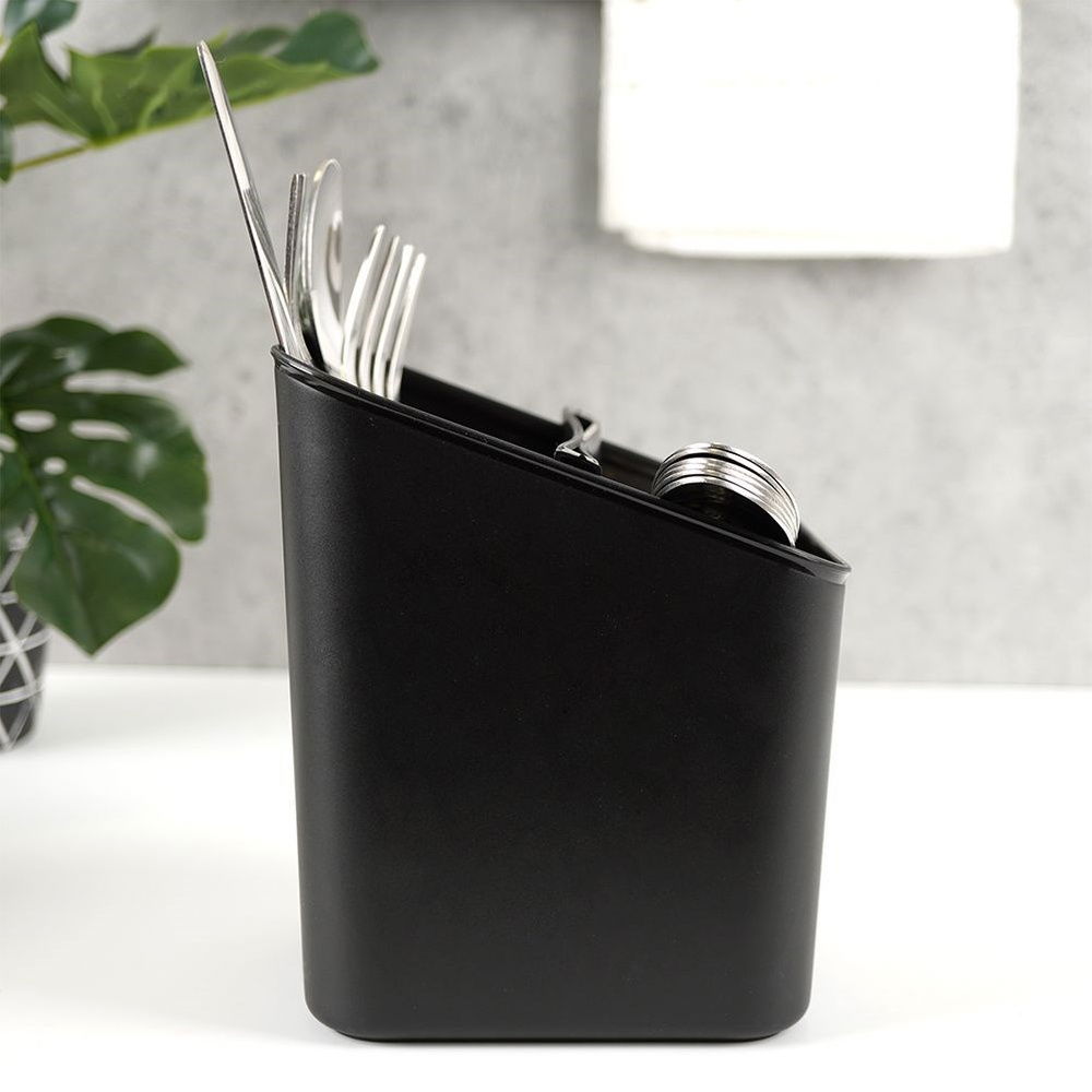 WYTRZYMAŁY - Pojemnik na sztućce i przybory kuchenne. Wykonany z wysokiej jakości tworzywa w kolorze czarnym. Niezwykle lekki. Pojemnik ma wymiary 14 x 11 x 16 cm.