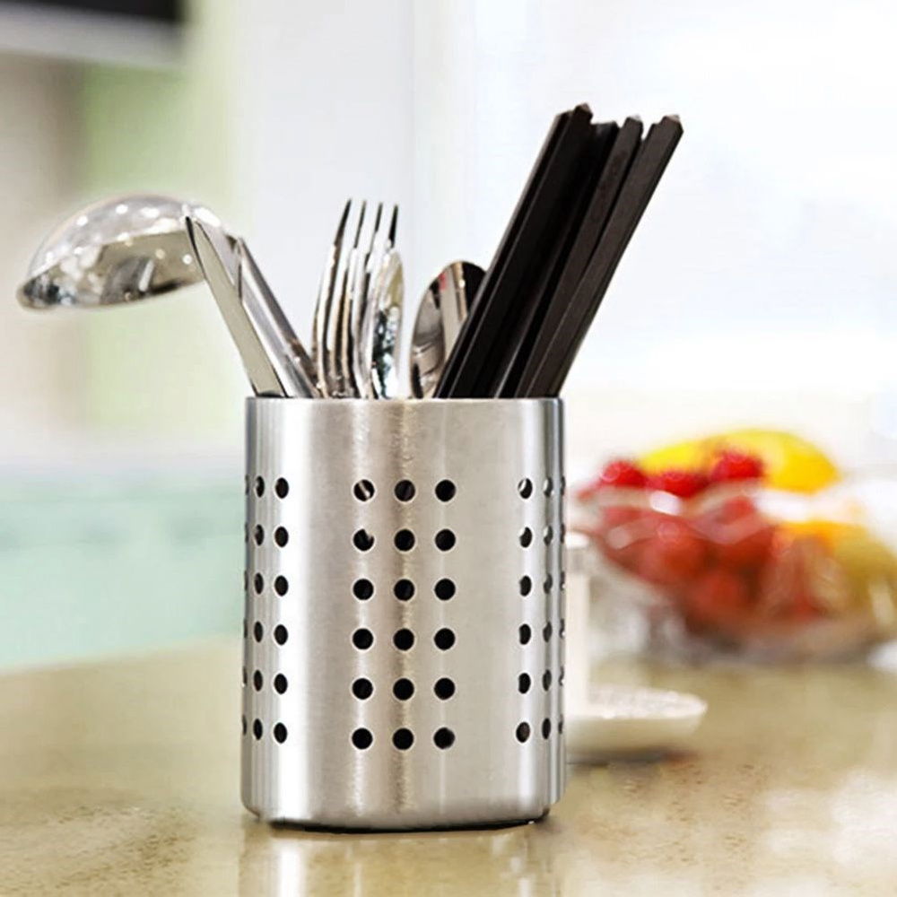 WYGODNE UŻYTKOWANIE - Duży otwór pozwoli nam na wygodne przechowywanie przyborów lub sztućców. Stojak posiada perforowaną powierzchnię, co zapobiega zbieraniu się wilgoci i jednocześnie ułatwia odnalezienie właściwej łyżki.