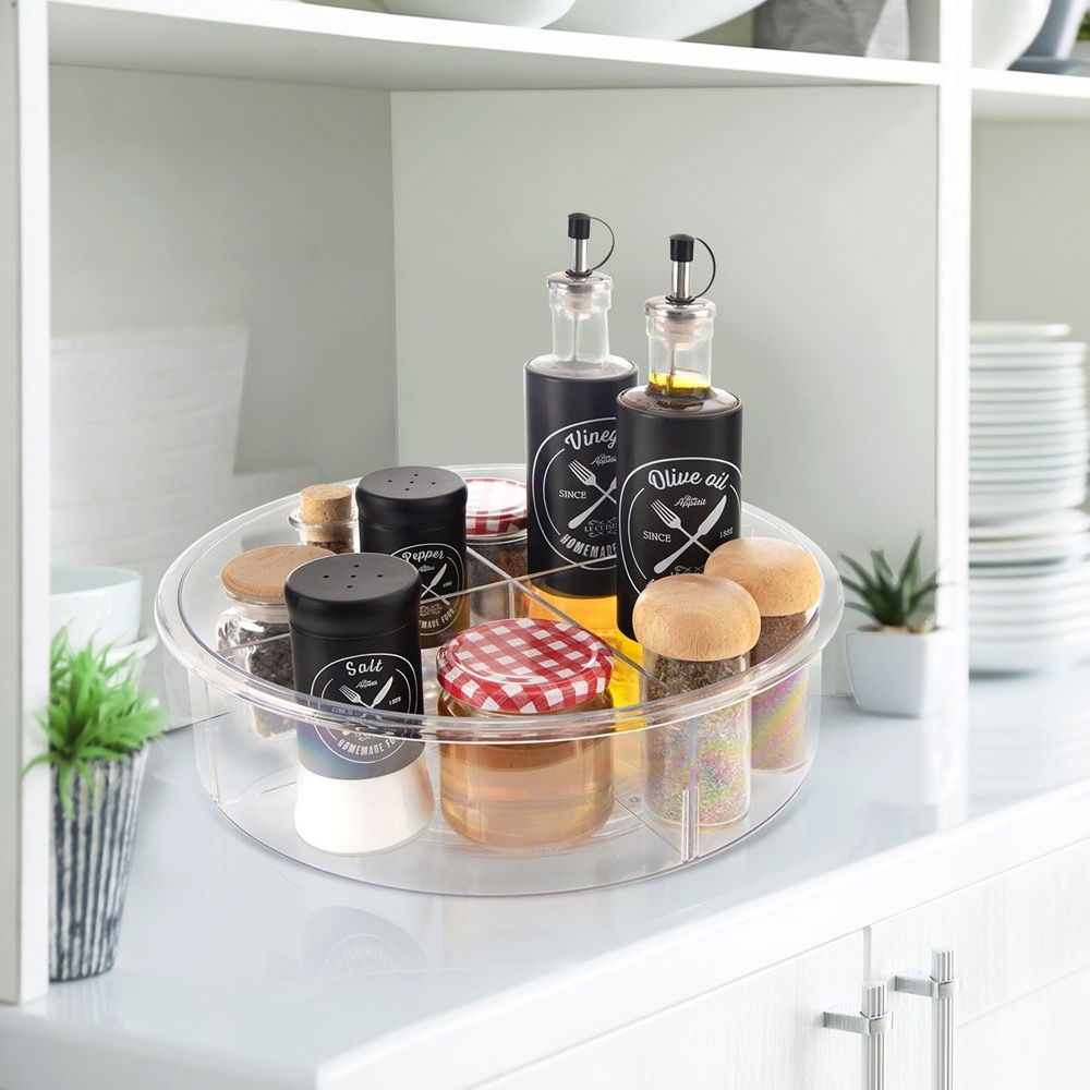 Uniwersalne zastosowanie - Dzięki podziałowi na sekcje oraz obrotowej konstrukcji, organizer doskonale sprawdza się do przechowywania różnych przedmiotów, takich jak kosmetyki, przyprawy, ale również słoiki czy butelki.