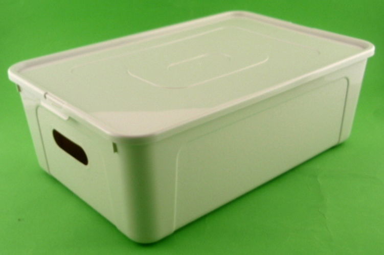 Oferujemy Państwu praktyczny pojemnik plastikowy z pokrywką, bardzo przydatny do utrzymania porządku w każdym domu.